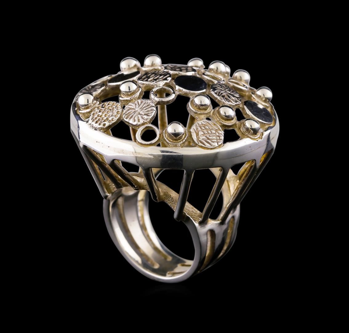 One of a kind high fashion sterling silver ring weighing 20.9 grams. This sterling silver promises a lasting shine.