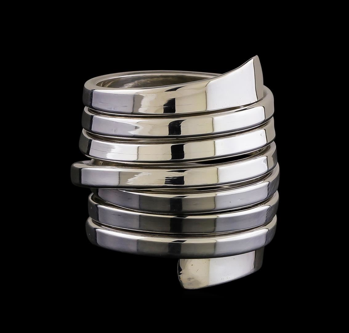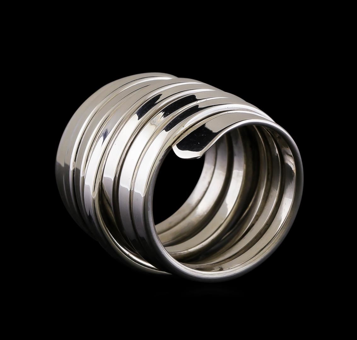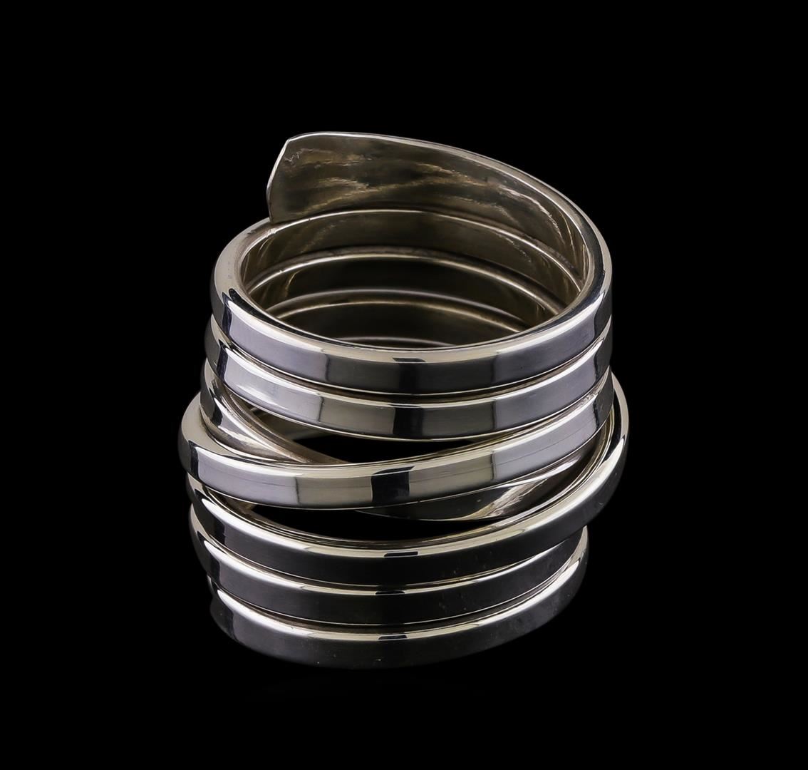 One of a kind high fashion sterling silver ring weighing 14.3 grams. This sterling silver promises a lasting shine.