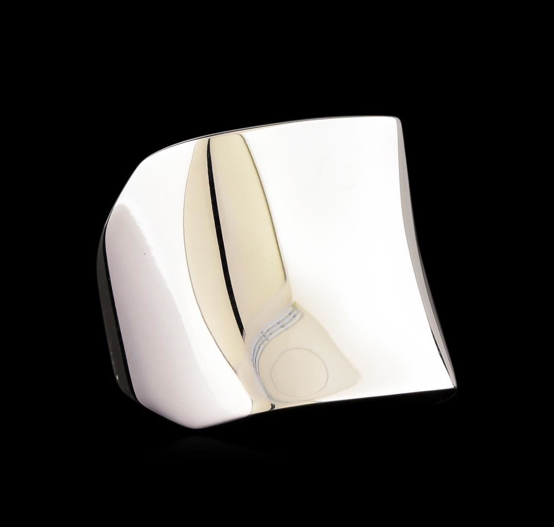 One of a kind high fashion sterling silver ring weighing 18.1 grams. This sterling silver promises a lasting shine.