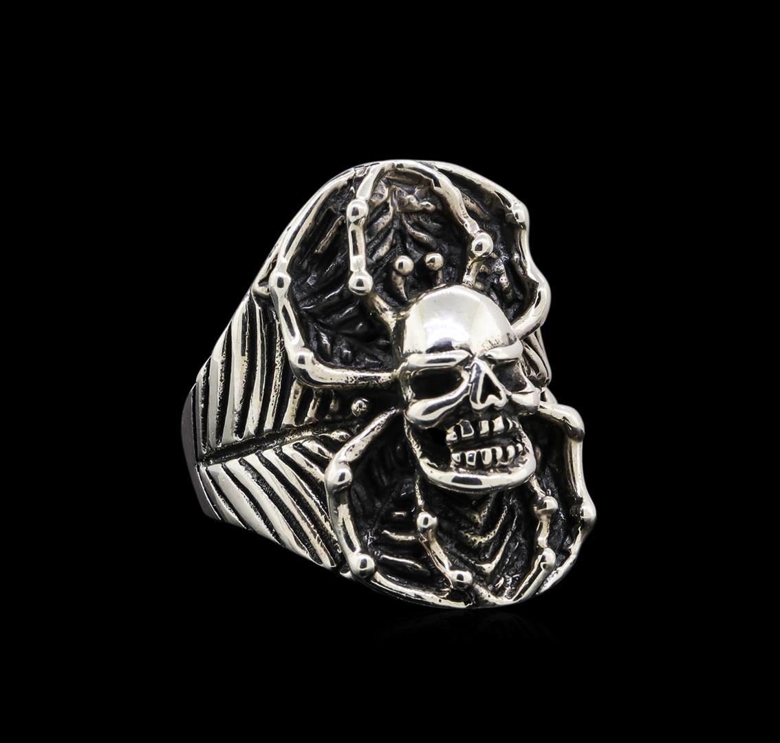 One of a kind high fashion sterling silver skull ring weighing 16.6 grams. This sterling silver promises a lasting shine.