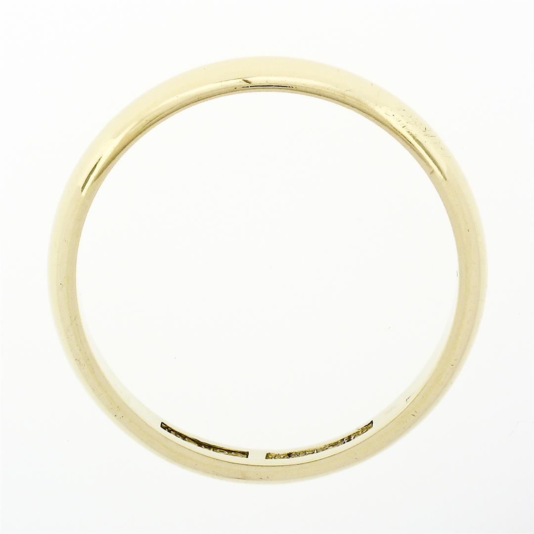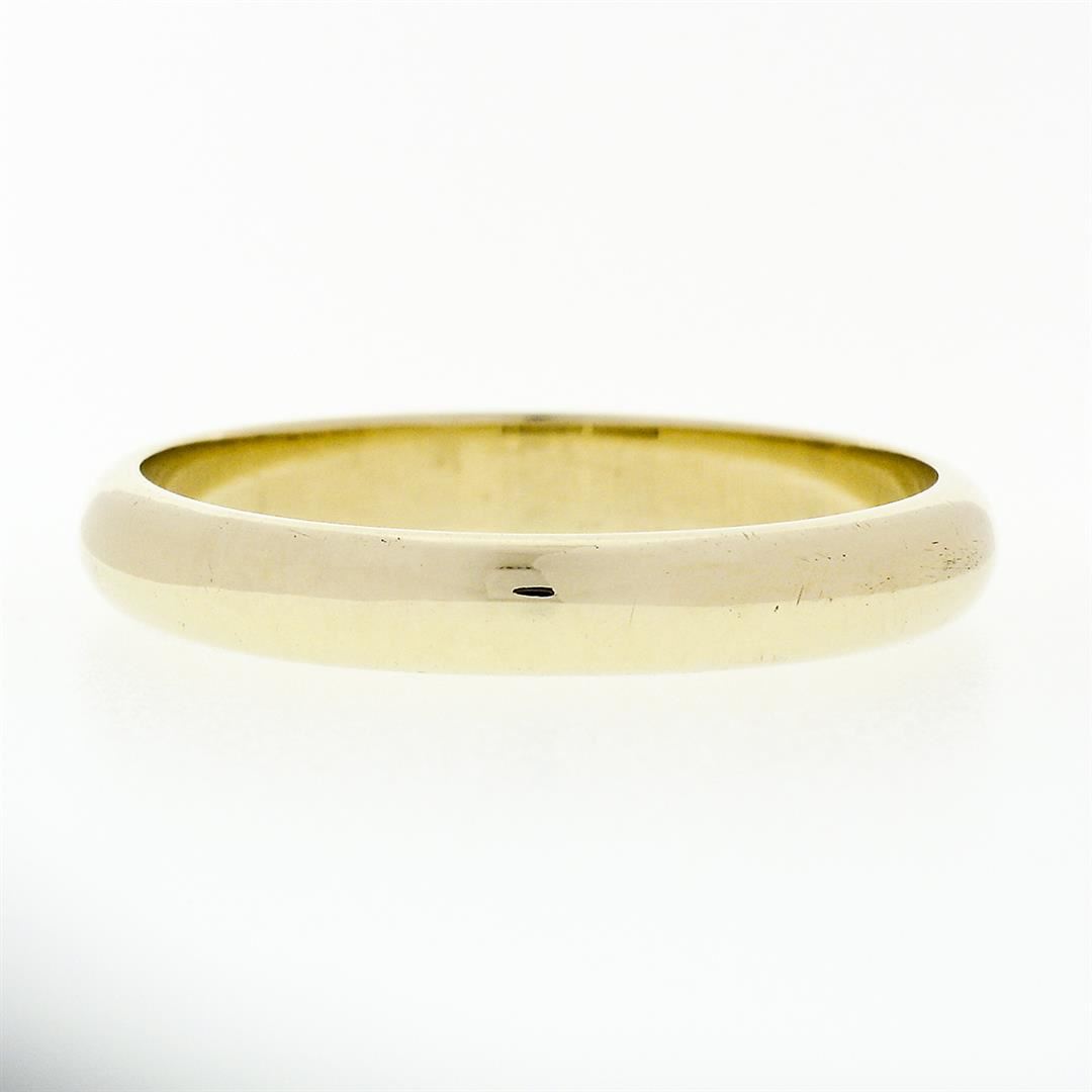 A vintage solid 14 yellow gold band ring. The ring is size 10.5, weighs a total of 4.11 grams, and measures 3.53mm wide.