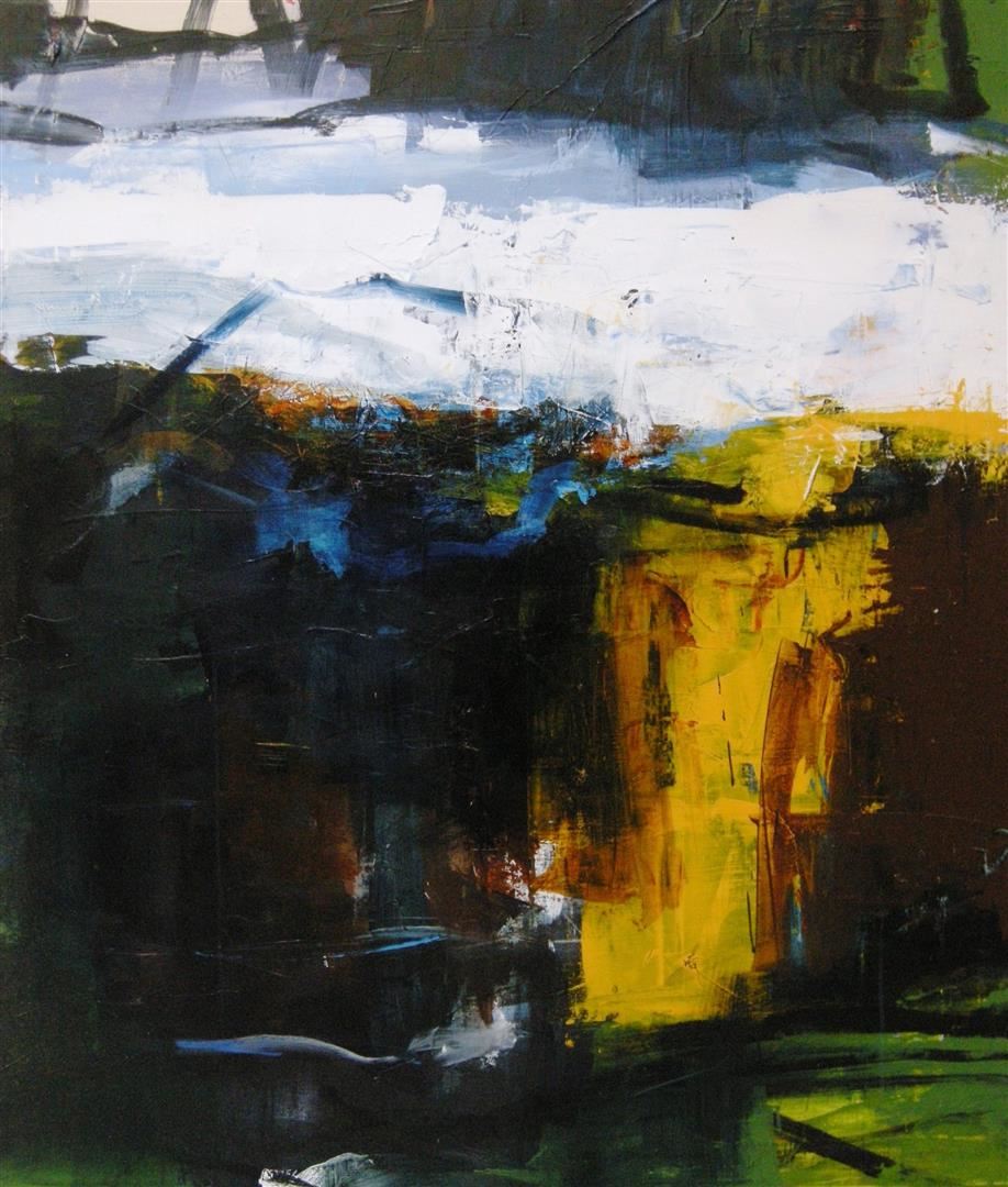 Danish-Ukrainian artist, Sergei Sviatchenko, offers a striking, vertical abstract in this oil on canvas. The painting measures 59 x 51; framed image measures approx. 65 x 67.