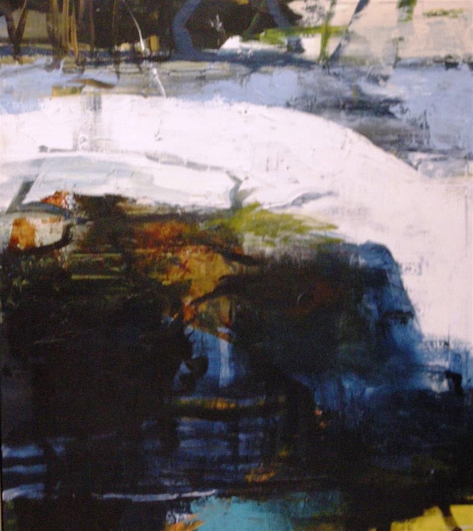 Sergei Sviatchenko's "Classical Dark Transformation II" directly complements his "Transformation I" in this vertical abstract. The painting measures 59 x 51; framed image measures approx. 65 x 67.
