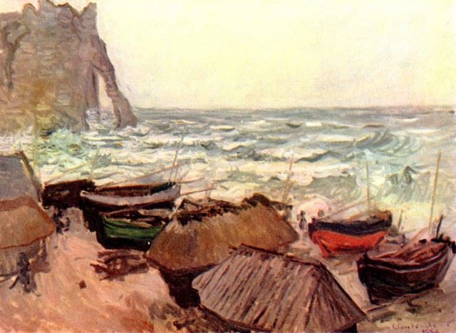 Artist: Claude Monet - Title: Durchbrochener Rock at Etretat - Medium: Fine Art Reproduction Giclee on Canvas - Image Size: Approximately 23.25 inches x 32 inches - Unframed on Unstretched Canvas - Biography: Claude Monet was born on November 14, 1840, in Paris, France. He enrolled in the Academy Suisse. After an art exhibition in 1874, a critic insultingly dubbed Monet's painting style "Impression," since it was more concerned with form and light than realism, and the term stuck. Monet struggled with depression, poverty and illness throughout his life. He died in 1926.