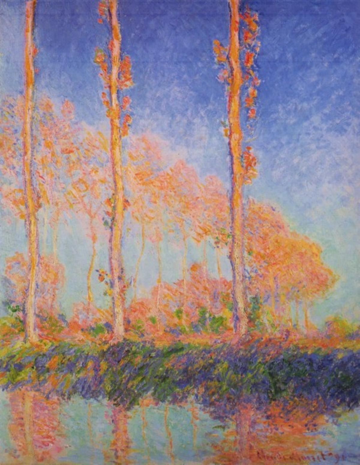 Artist: Claude Monet - Title: Poplars at Philadelphia - Medium: Fine Art Reproduction Giclee on Canvas - Image Size: Approximately 32 inches x 24.75 inches - Unframed on Unstretched Canvas - Biography: Claude Monet was born on November 14, 1840, in Paris, France. He enrolled in the Academy Suisse. After an art exhibition in 1874, a critic insultingly dubbed Monet's painting style "Impression," since it was more concerned with form and light than realism, and the term stuck. Monet struggled with depression, poverty and illness throughout his life. He died in 1926.