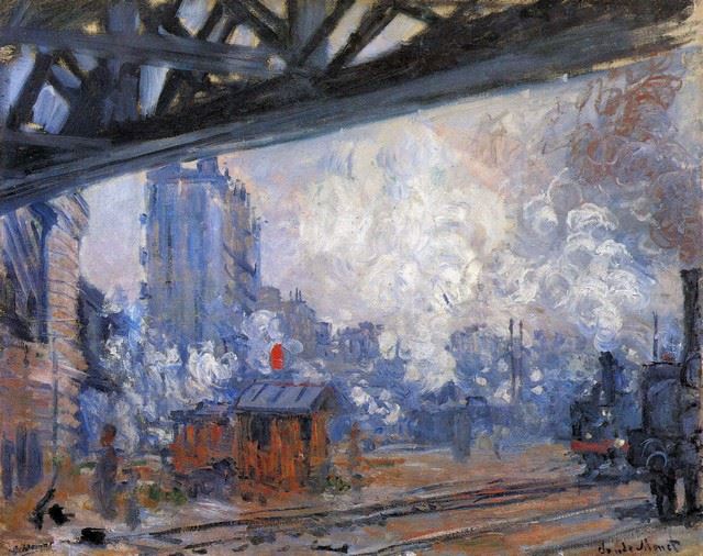 Artist: Claude Monet - Title: The Gare Saint-Lazare - Medium: Fine Art Reproduction Giclee on Canvas - Image Size: Approximately 15.75 inches x 20 inches - Unframed on Unstretched Canvas - Biography: Claude Monet was born on November 14, 1840, in Paris, France. He enrolled in the Academy Suisse. After an art exhibition in 1874, a critic insultingly dubbed Monet's painting style "Impression," since it was more concerned with form and light than realism, and the term stuck. Monet struggled with depression, poverty and illness throughout his life. He died in 1926.