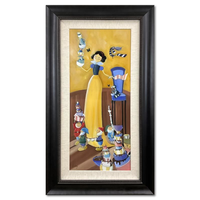 "Cleaning Up" is a limited edition giclee on canvas by Katie Kelly, numbered and hand signed by the artist. This piece comes framed. This piece is licensed by Disney Fine Art Includes Letter of Authenticity. Measures approx. 22" x 39" (frame), 12.5" x 29.5" (image). There may be very minor wear on the corners but the piece is in good condition.