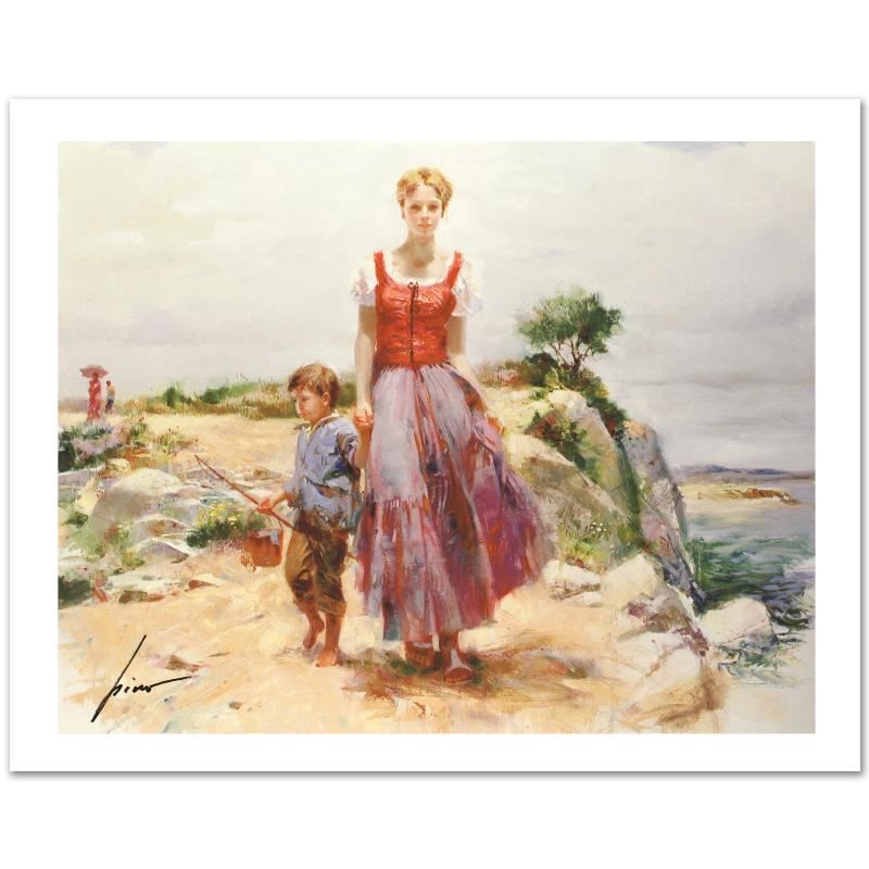 "Cliffside Retreat" is a limited edition giclee on paper, numbered and hand signed by Pino (1939-2010). Includes Certificate of Authenticity! Measures approx. 20" x 16" (with border); 18" x 14" (image).