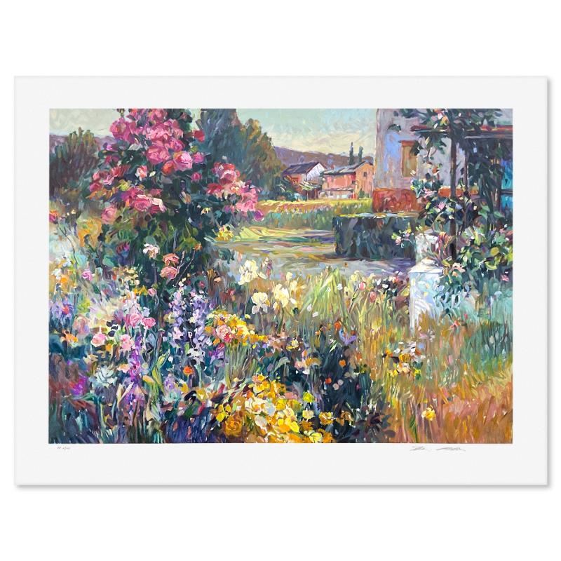 "Climbing Rose" is a limited edition serigraph on paper by Henri Plisson (1933-2006), numbered 2/20 and hand signed by the artist. Includes Letter of Authenticity. Measures approx. 30.5" x 38.5" (border), 25" x 33" (image). ** Please note: There is some creasing on the bottom-right corner and along the bottom border. **