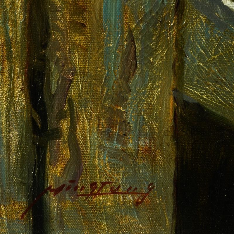 "Climbing Wild Roses" is an original oil painting on stretched canvas by Ming Feng, hand signed by the artist. Includes Letter of Authenticity. Measures approx. 30" x 24" (image).