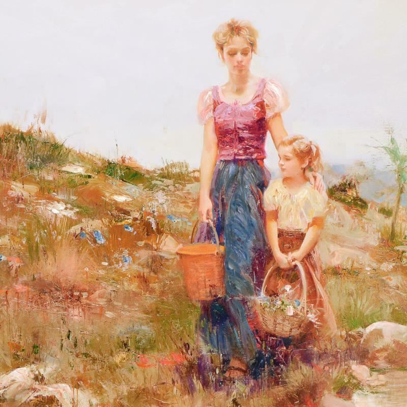 "Close to Home" is an artist embellished limited edition giclee on canvas by Pino (1939-2010), AP Numbered and hand signed by the artist. Includes Certificate of Authenticity. Measures approx. 48" x 36" (image). This piece is not stretched.