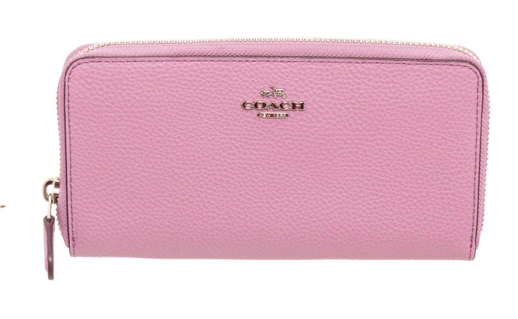 Coach pink leather Floral Accordian zippy wallet with silver-tone hardware, floral embelshments at front face, pink leather interior lining, five interior compartments; one with zip closure, twelve cardholder slots and overall zip around closure. Measurements: Length: 8 in / 20 cm Width: 0.85 in / 2 cm 4.35 in / 11 cmCONDITION: Pre-Owned Good overall, please see photographs for detail.