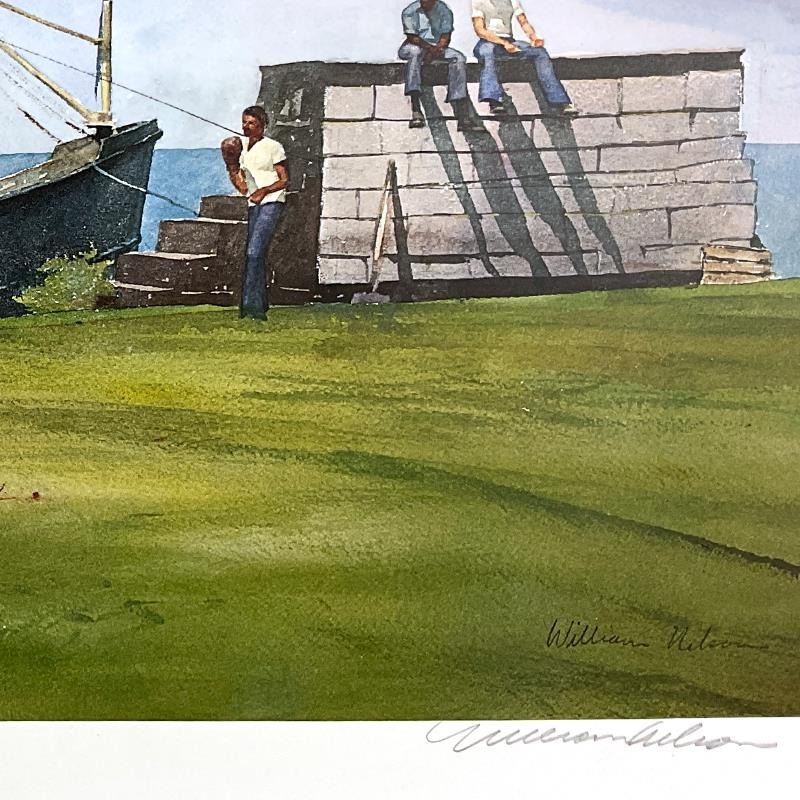 Coast Guard Smoker by Nelson, William. "Coast Guard Smoker" is a limited edition lithograph on paper, numbered and hand signed by William Nelson. Includes Letter of Authenticity. Measures approx. 28.5" x 22.5" (border), 25" x 19" (image). There may be minor imperfections in the white border area but the piece is in overall good condition.