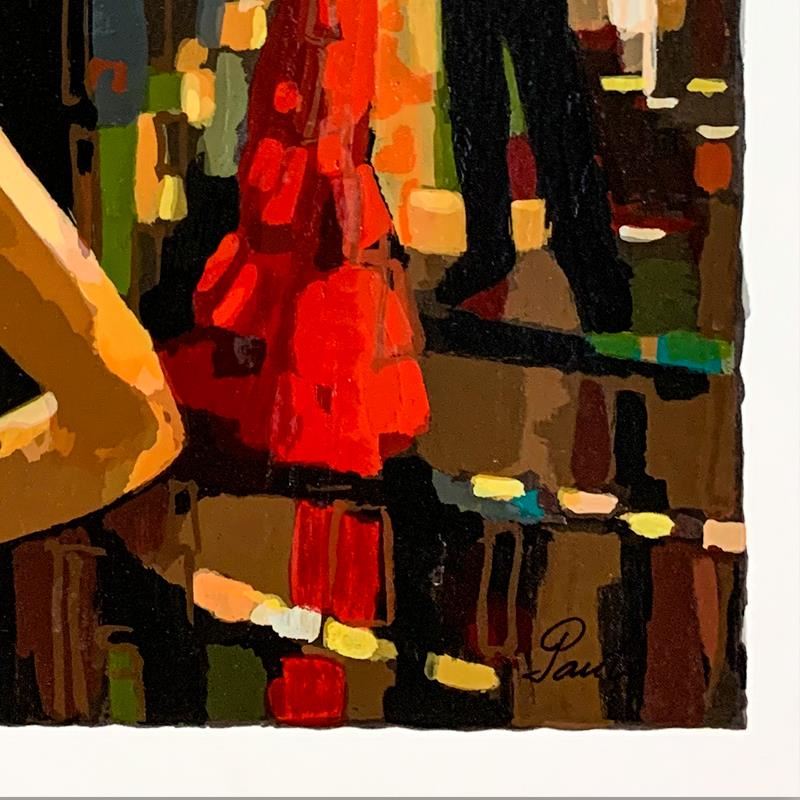 "Cocktail" is a limited edition serigraph on paper by Nelly Panto that is numbered, hand signed and accompanied by a letter of authenticity. Measures approximately 16.5" x 15" (border), 15" x 13.5" (image).