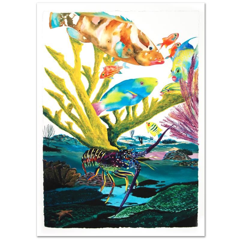 Wyland is renowned internationally for his incredible depictions of life under the sea. Full of careful details and vibrant colors, his work is collected all over the world. "Coral Reef Life" is a limited edition giclee diptych on canvas by Wyland, numbered and hand signed by the artist. This piece comes in two adjoining canvases, one of which bears the numbering for the piece, the other of which bears the artist's hand signature; it is intended to be displayed as a diptych. Includes Certificate of Authenticity! Each panel measures approx. 20" x 28" (image).