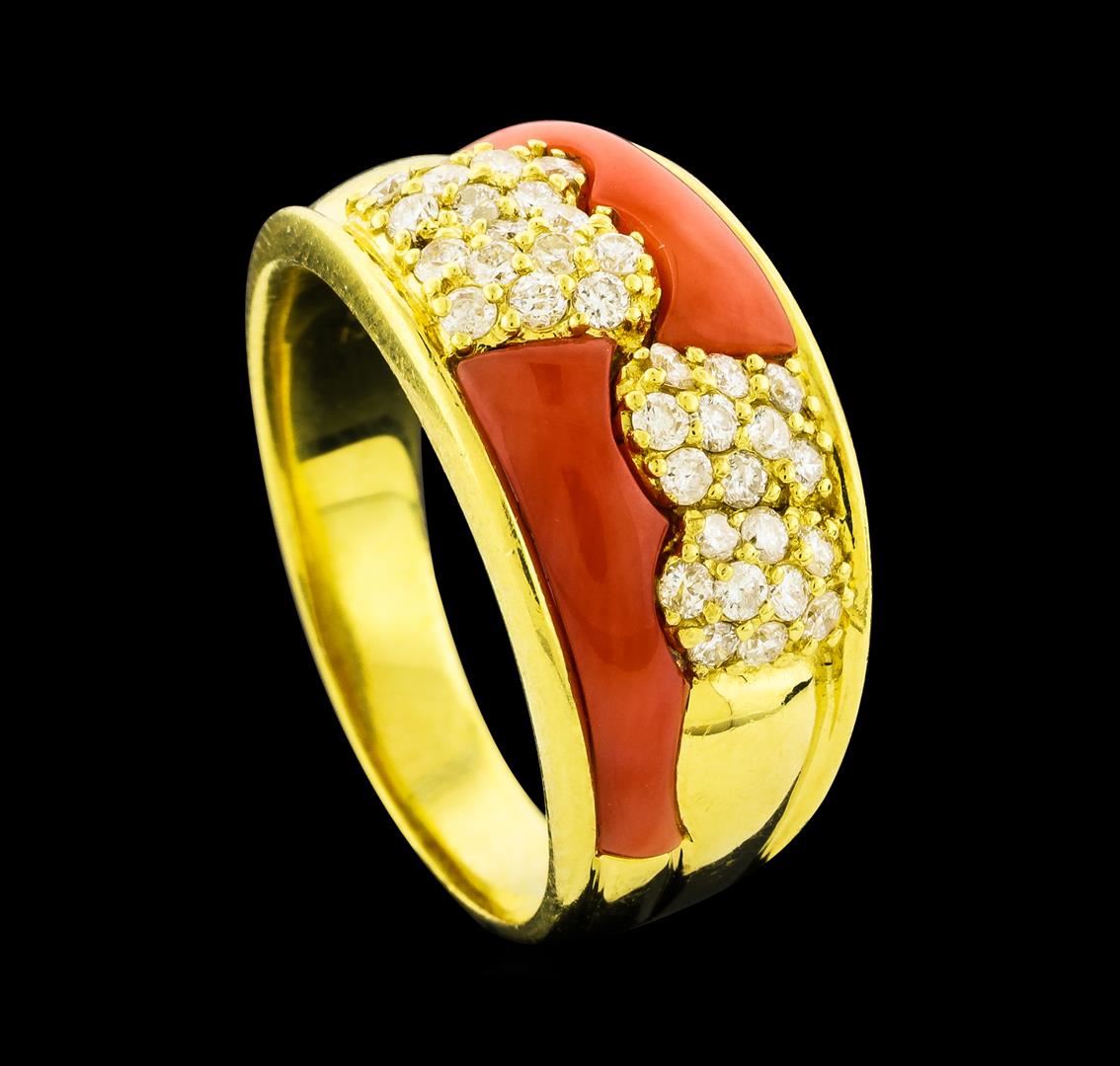 One ring featuring: 18KT Yellow Gold containing Coral and Diamonds with a total weight of 0.52ct. Total Weight of Ring: 8 grams.