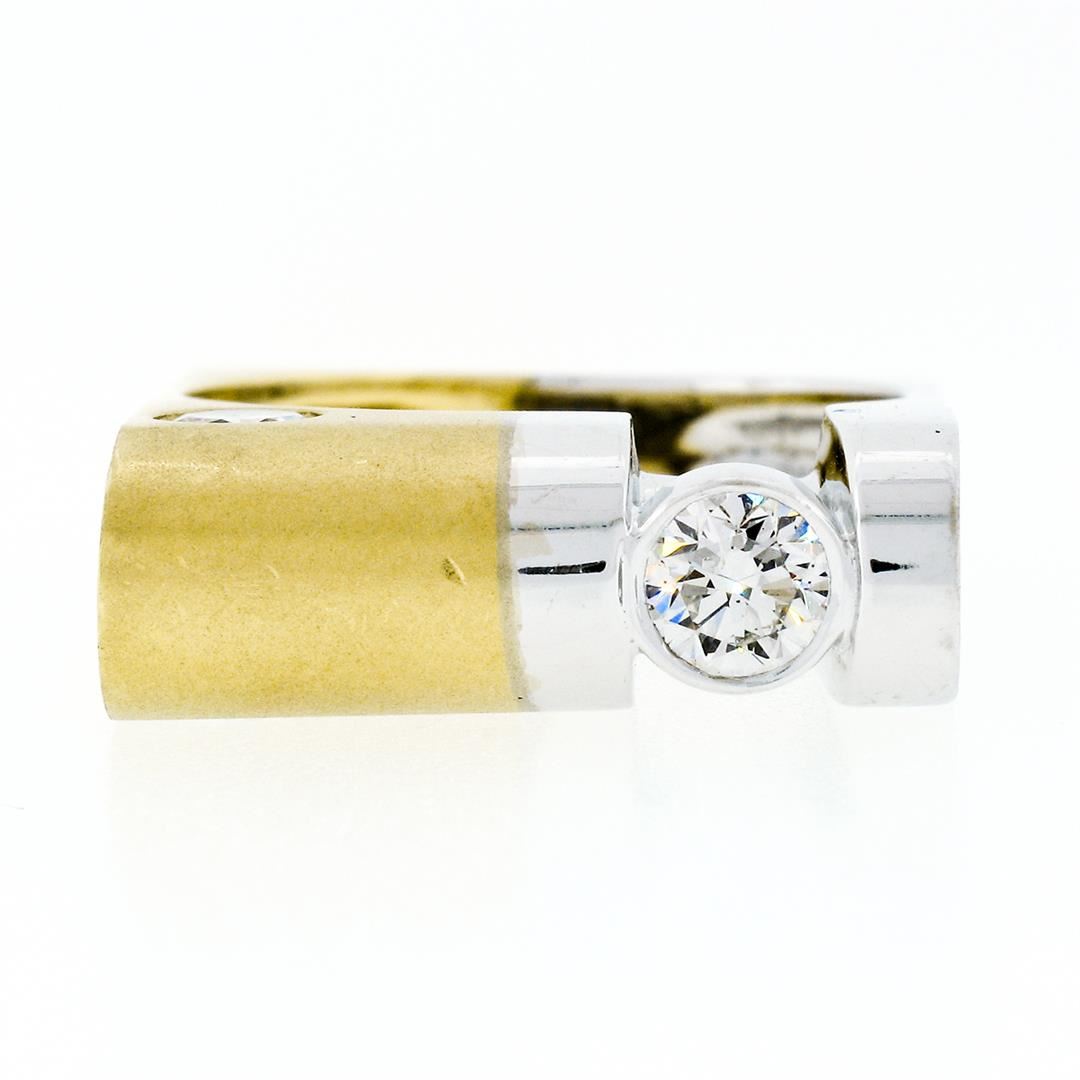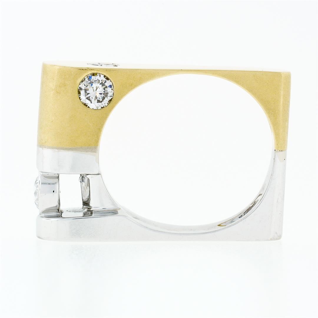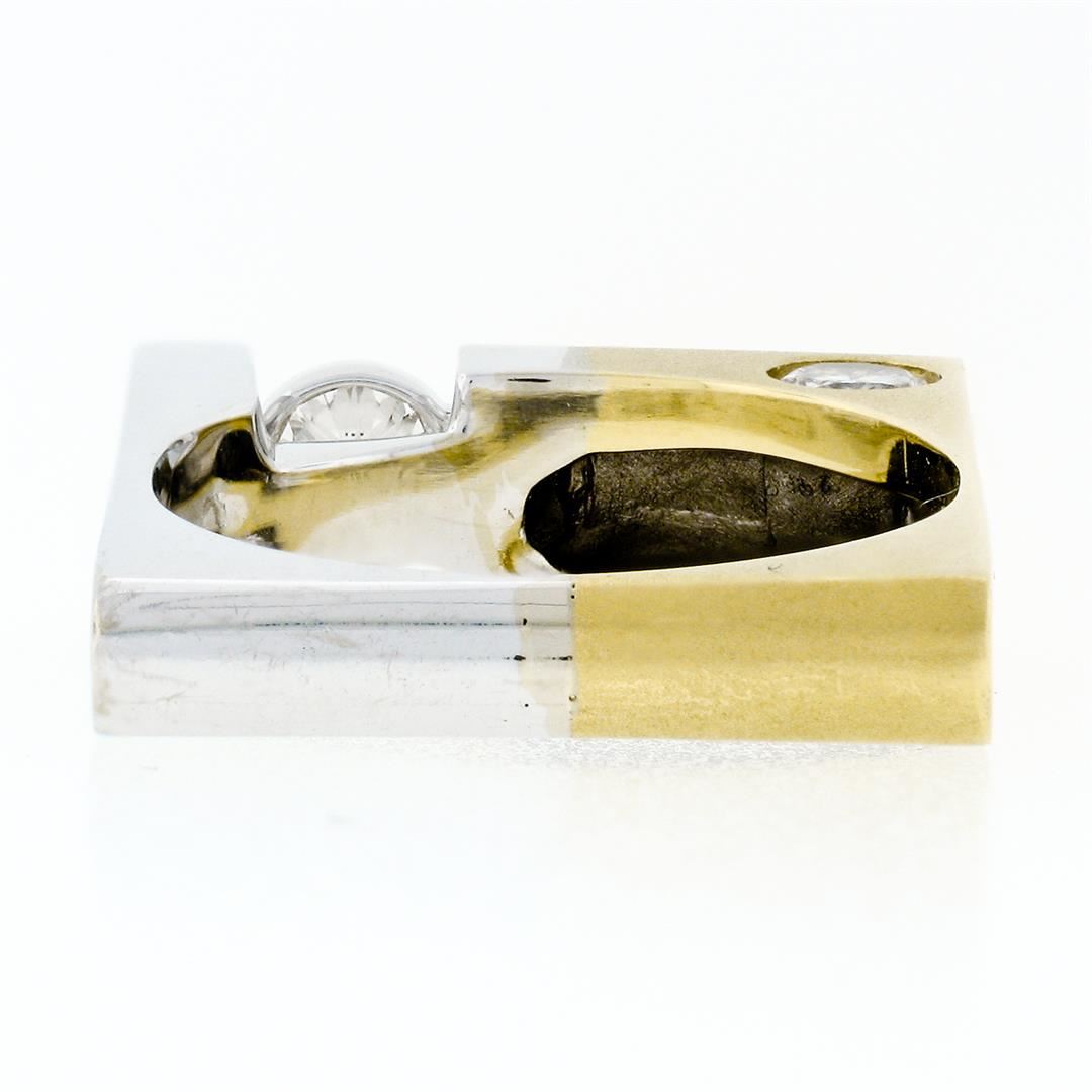 An authentic Cornelis Hollander solid 18k two tone gold dual finished band ring with 4 round brilliant cut natural diamonds (F/G - VS1; 0.97ctw). The ring is size 9.5, weighs a total of 15.38 grams, and measures 7.25mm wide.