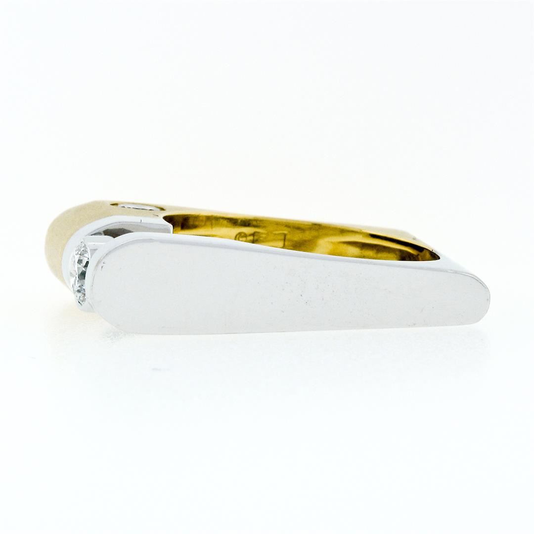 An authentic Cornelis Hollander solid 18k two tone gold dual finished band ring with 4 round brilliant cut natural diamonds (F/G - VS1; 0.97ctw). The ring is size 9.5, weighs a total of 15.38 grams, and measures 7.25mm wide.