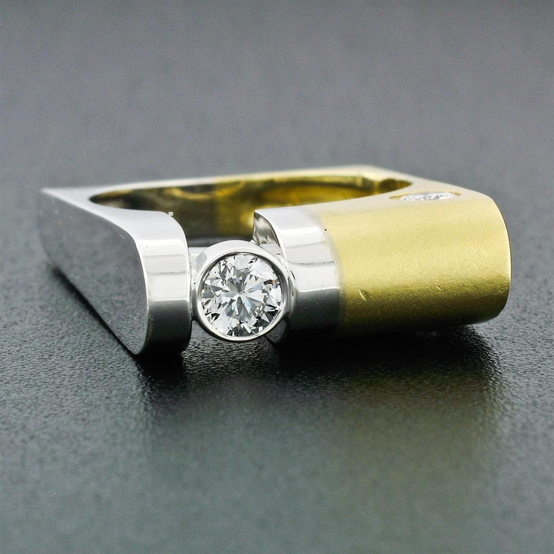 An authentic Cornelis Hollander solid 18k two tone gold dual finished band ring with 4 round brilliant cut natural diamonds (F/G - VS1; 0.97ctw). The ring is size 9.5, weighs a total of 15.38 grams, and measures 7.25mm wide.