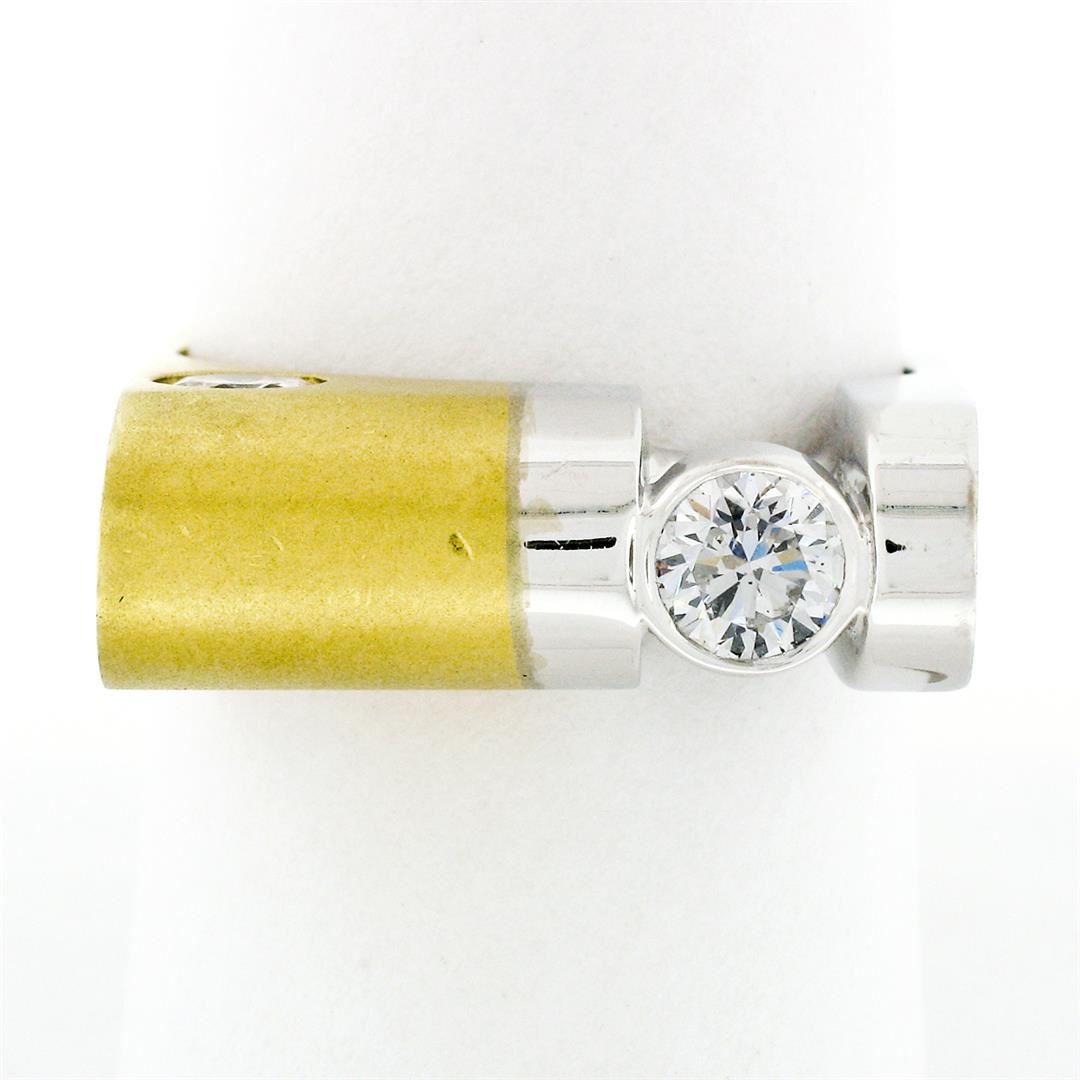 An authentic Cornelis Hollander solid 18k two tone gold dual finished band ring with 4 round brilliant cut natural diamonds (F/G - VS1; 0.97ctw). The ring is size 9.5, weighs a total of 15.38 grams, and measures 7.25mm wide.
