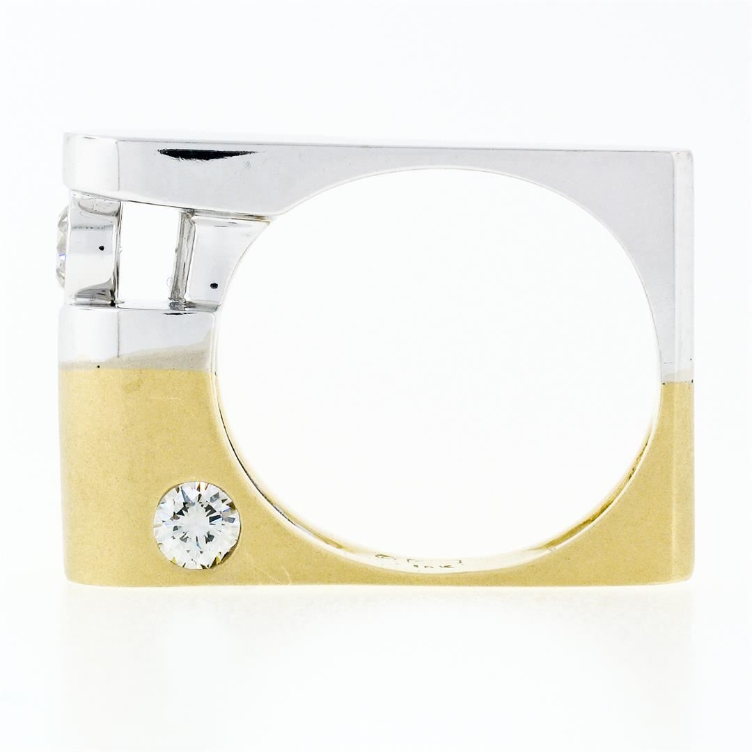 An authentic Cornelis Hollander solid 18k two tone gold dual finished band ring with 4 round brilliant cut natural diamonds (F/G - VS1; 0.97ctw). The ring is size 9.5, weighs a total of 15.38 grams, and measures 7.25mm wide.