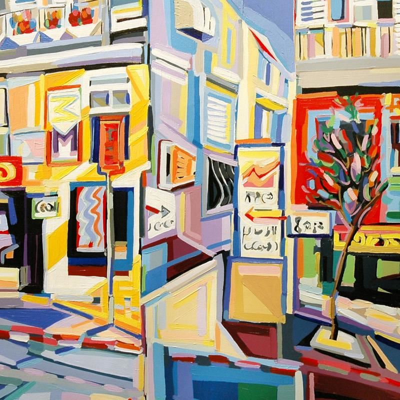 "Corner at Bugrashov" is a limited edition giclee on canvas by Natalie Rozenbaum, numbered and hand signed by the artist. Includes Letter of Authenticity. Measures approx. 24" x 20" (image).