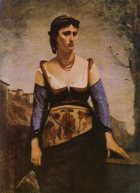 Artist: Jean-Baptiste-Camille Corot - Title: Agostina 1866 - Medium: Fine Art Reproduction Giclee on Canvas - Image Size: Approximately 20 inches x 14.5 inches - Unframed on Unstretched Canvas - Biography: Jean-Baptiste-Camille Corot (July 16, 1796 - February 22, 1875) was a French landscape and portrait painter as well as a printmaker in etching. He is a pivotal figure in landscape painting and his vast output simultaneously referenced the Neo-Classical tradition and anticipated the plein-air innovations of Impressionism.
