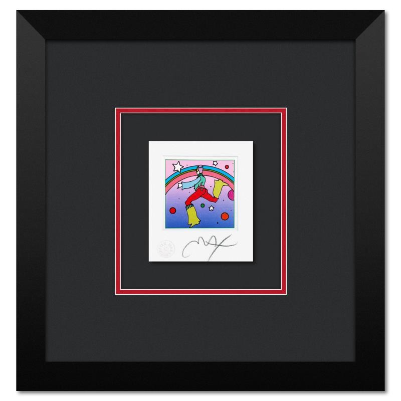 "Cosmic Flyer in Space" is a limited edition lithograph on paper by Peter Max, numbered and hand signed by the artist. This piece comes framed. Includes Certificate of Authenticity from Peter Max Studios. Measures approx. 13.5" x 13" (frame), 3.5" x 3" (image).