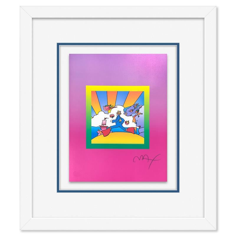 "Cosmic Runner on Blends" is a limited edition lithograph on paper by Peter Max, numbered and hand signed by the artist. This piece comes framed. Includes Certificate of Authenticity from Peter Max Studios. Measures approx. 27" x 23" (frame), 17" x 13" (image).