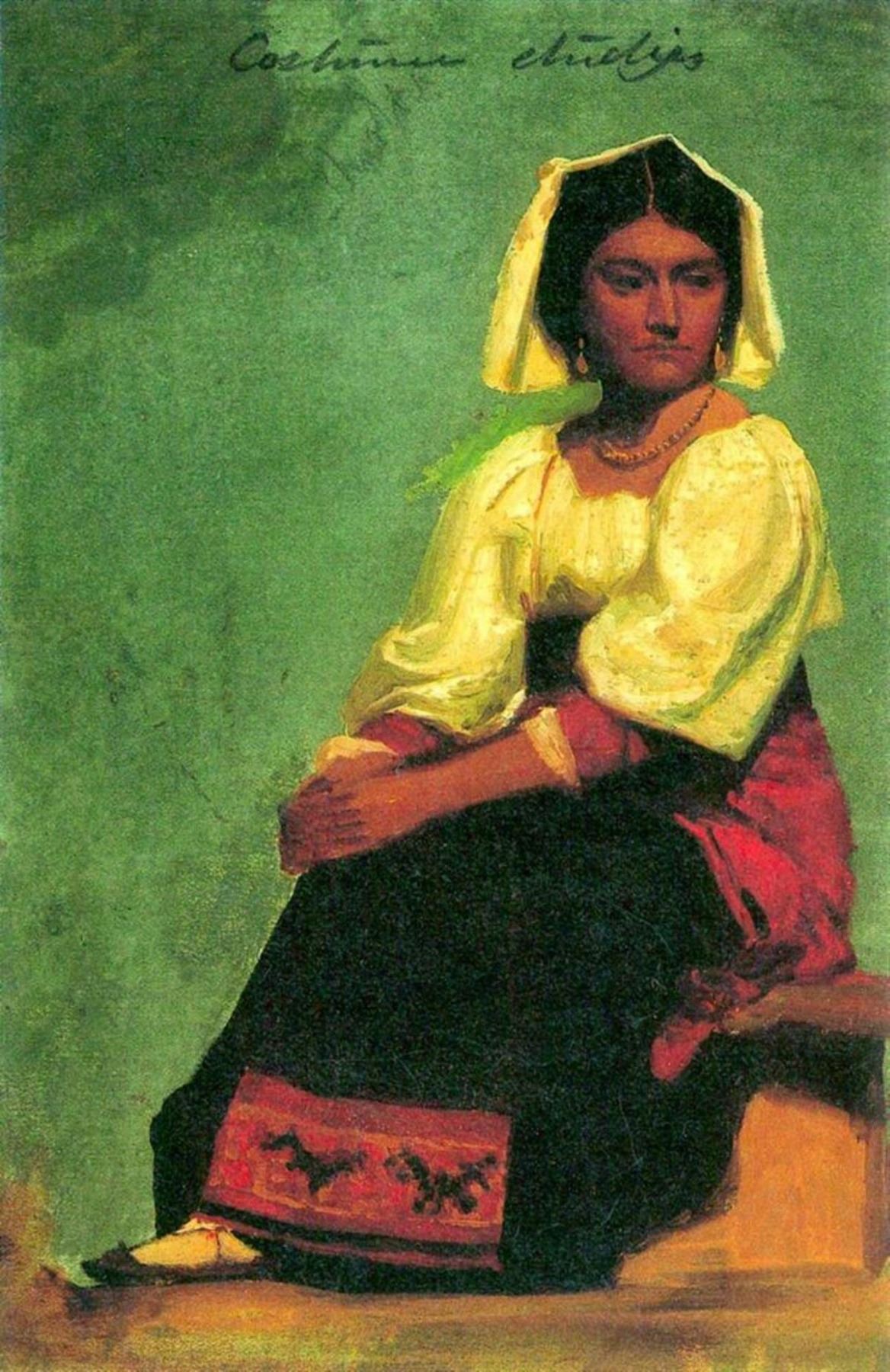 Artist: Albert Bierstadt - Title: Costume Study of a Seated Woman - Medium: Fine Art Giclee on Canvas - Image Size: Approximately 20 inches x 13 inches - Unframed on Unstretched Canvas - Biography: Bierstadt became internationally renowned for his beautiful and enormous paintings of the newly accessible American west, and his works found their way into public and private collections at staggeringly high prices for his time. His popularity and wealth rose to tremendous heights only to fade as the interest in the Boston School and impressionism turned public taste away from his highly detailed landscapes suffused with golden light. -