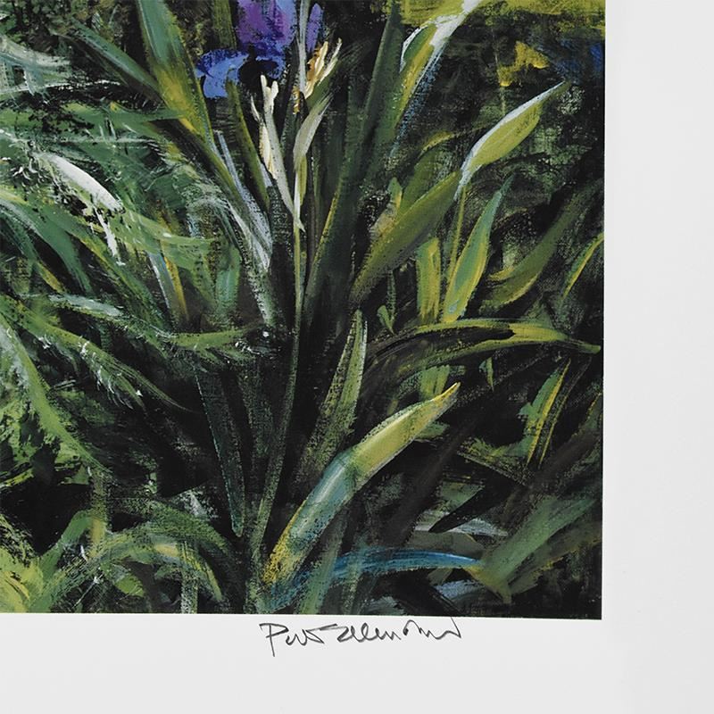 "Cottage Garden" is a limited edition lithograph on paper by Peter Ellenshaw (1913-2007) numbered and hand signed by the artist. Includes Letter of Authenticity. Measures approx. 26" x 18" (border) 21.5" x 13.5" (image). Please note: due to the very thin nature of this paper there may be some minor creases.