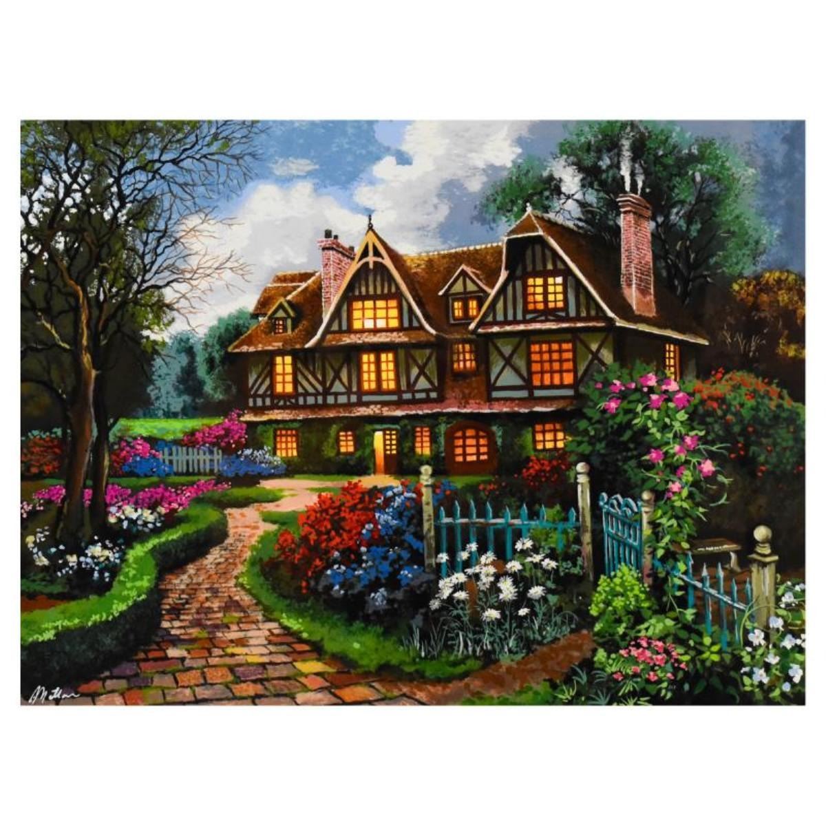Country Cottage by Metlan, Anatoly. "Country Cottage" is a limited edition serigraph on paper by Anatoly Metlan, numbered 26/480 and hand signed by the artist. This piece comes custom framed. Includes Letter of Authenticity. Measures approx. 32" x 26.5" (frame), 24" x 18" (image).