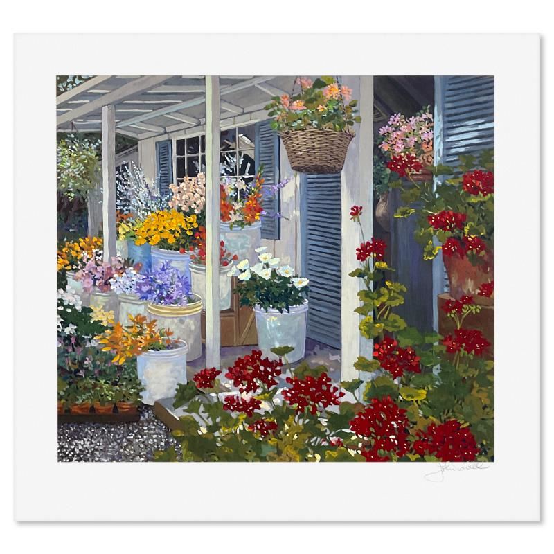 "Country Flowers" is a limited edition printer's proof serigraph on paper by John Powell, numbered and hand signed by the artist. Includes Letter of Authenticity. Measures approx. 23" x 24" (border), 18" x 20" (image).