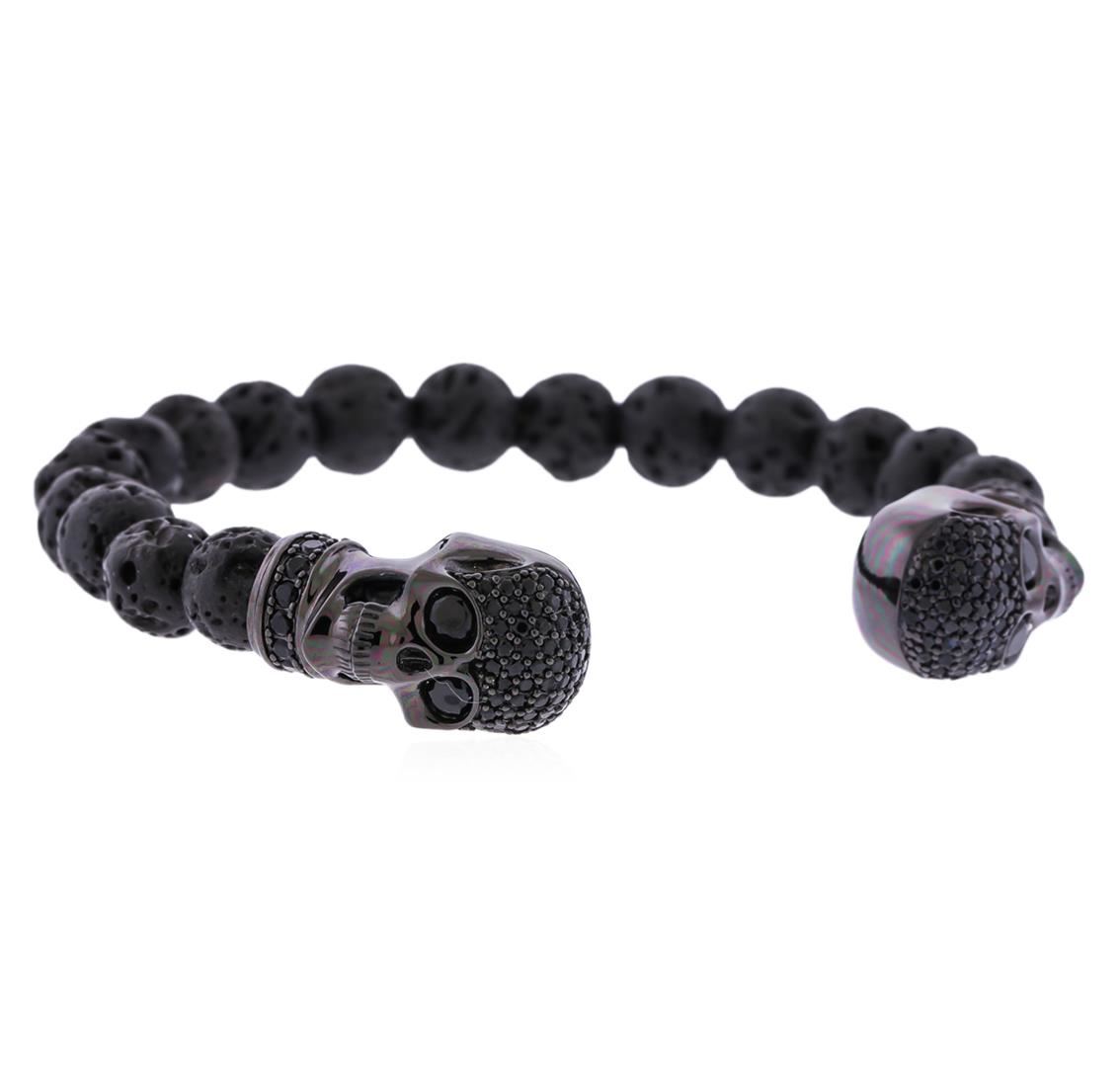 One Cozmo Sterling Silver Black Crystal Skull Cuff Bracelet.