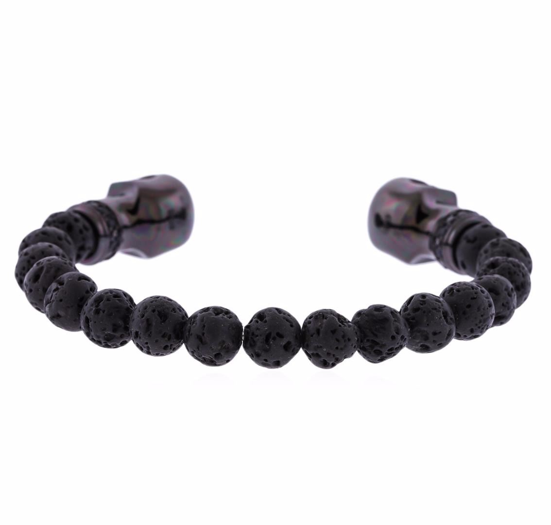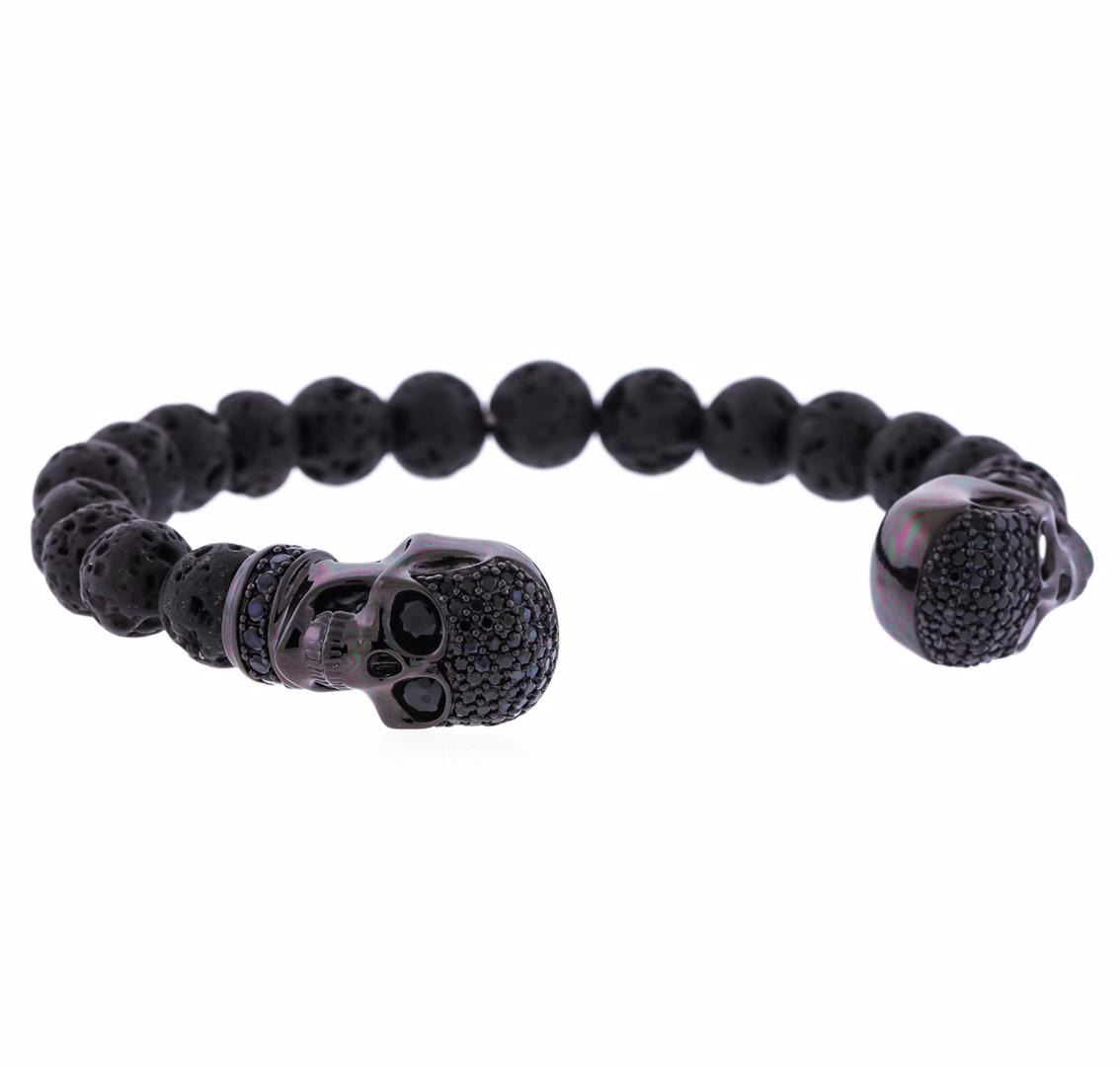 One Cozmo Sterling Silver Black Crystal Skull Cuff Bracelet.