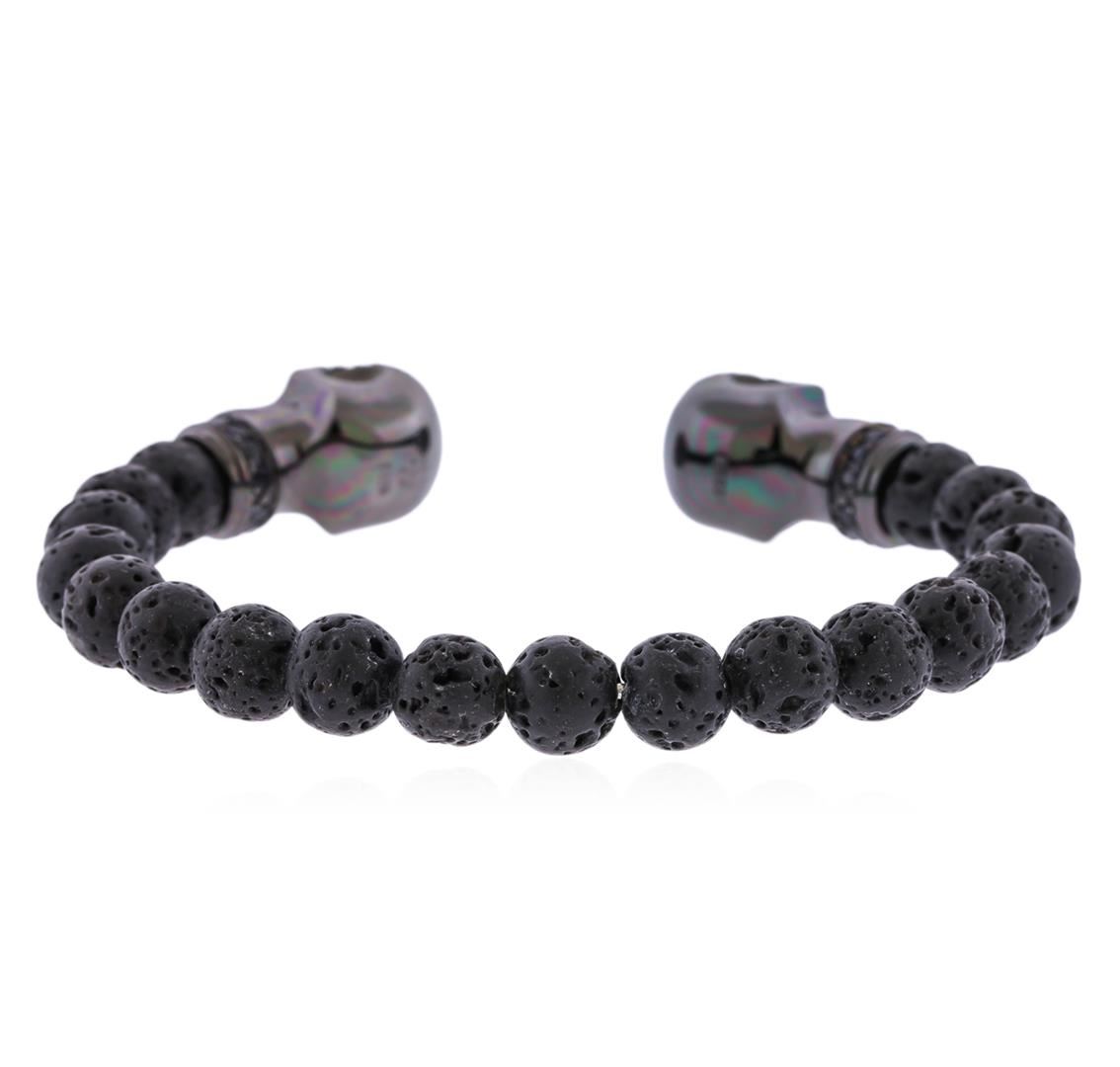One Cozmo Sterling Silver Black Crystal Skull Cuff Bracelet.