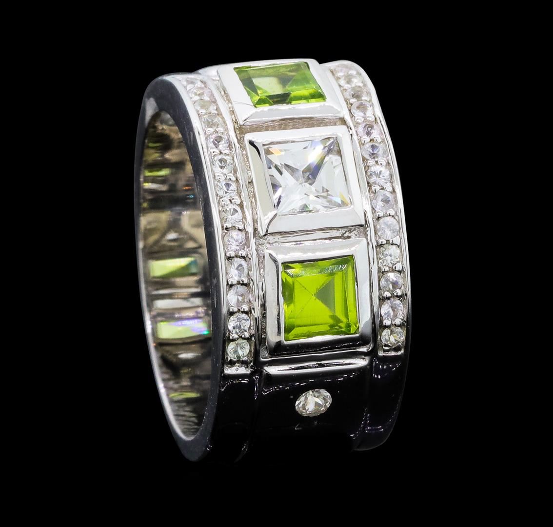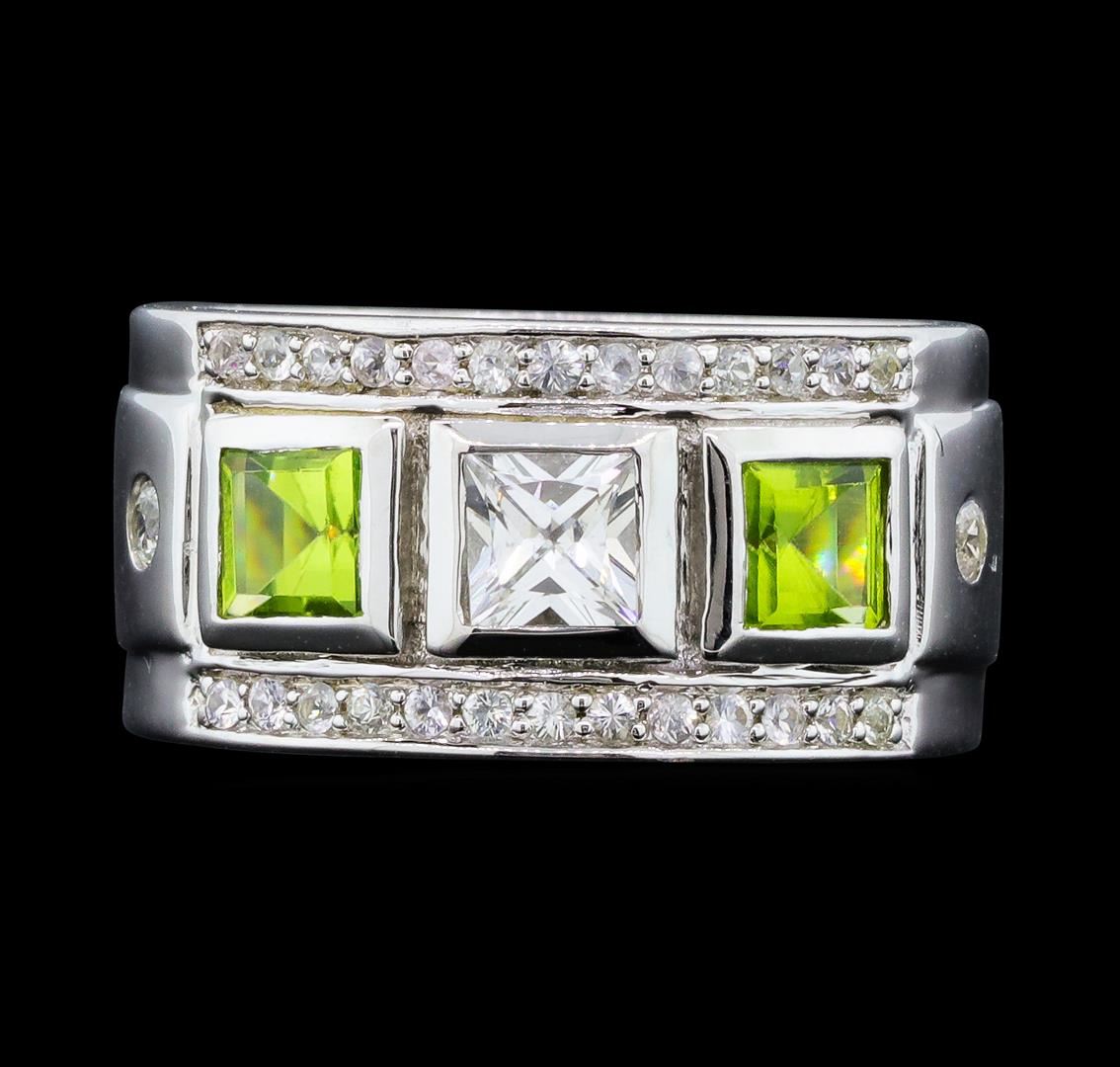 From the brand whose products have inspired creative expression for more than 110 years comes this beautiful ring by Crayola. This stunning piece of jewelry reflects the image and colorful personality of the Crayola brand. The Ring features .925 Silver With Rhodium weighing 6.30gr containing Peridot (AAA) Square 4.00mm - 2Pcs + Natural White Sapphire Square 4.00mm - 1Pcs + Natural White Sapphire Round 2.00mm - 2Pcs + Natural White Sapphire Round 1.20mm - 24Pcs (With J BACK). Total Peridot weight is 0.60ctw. Total White Sapphire weight is 0.80ctw.