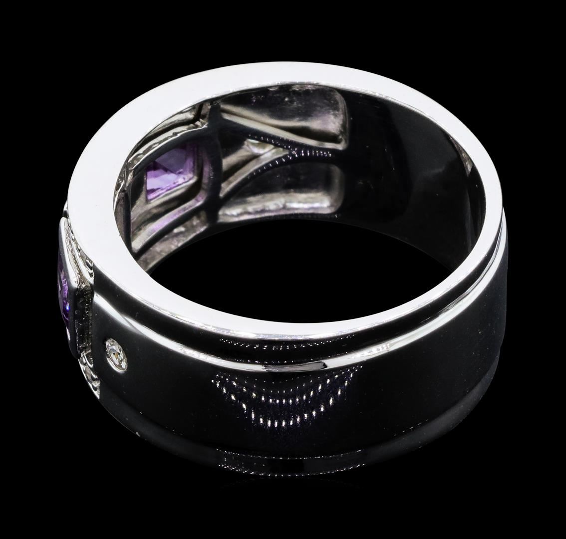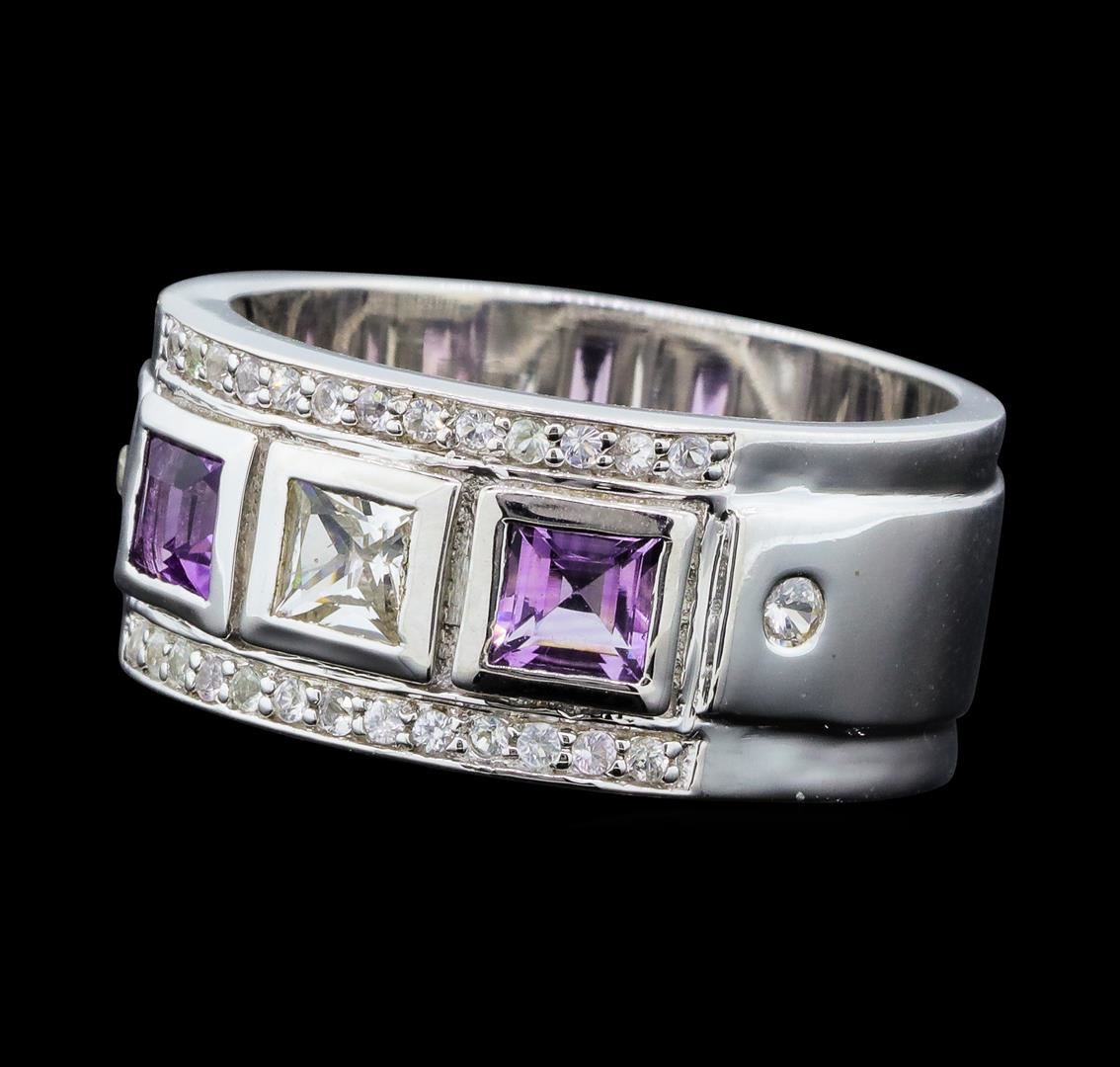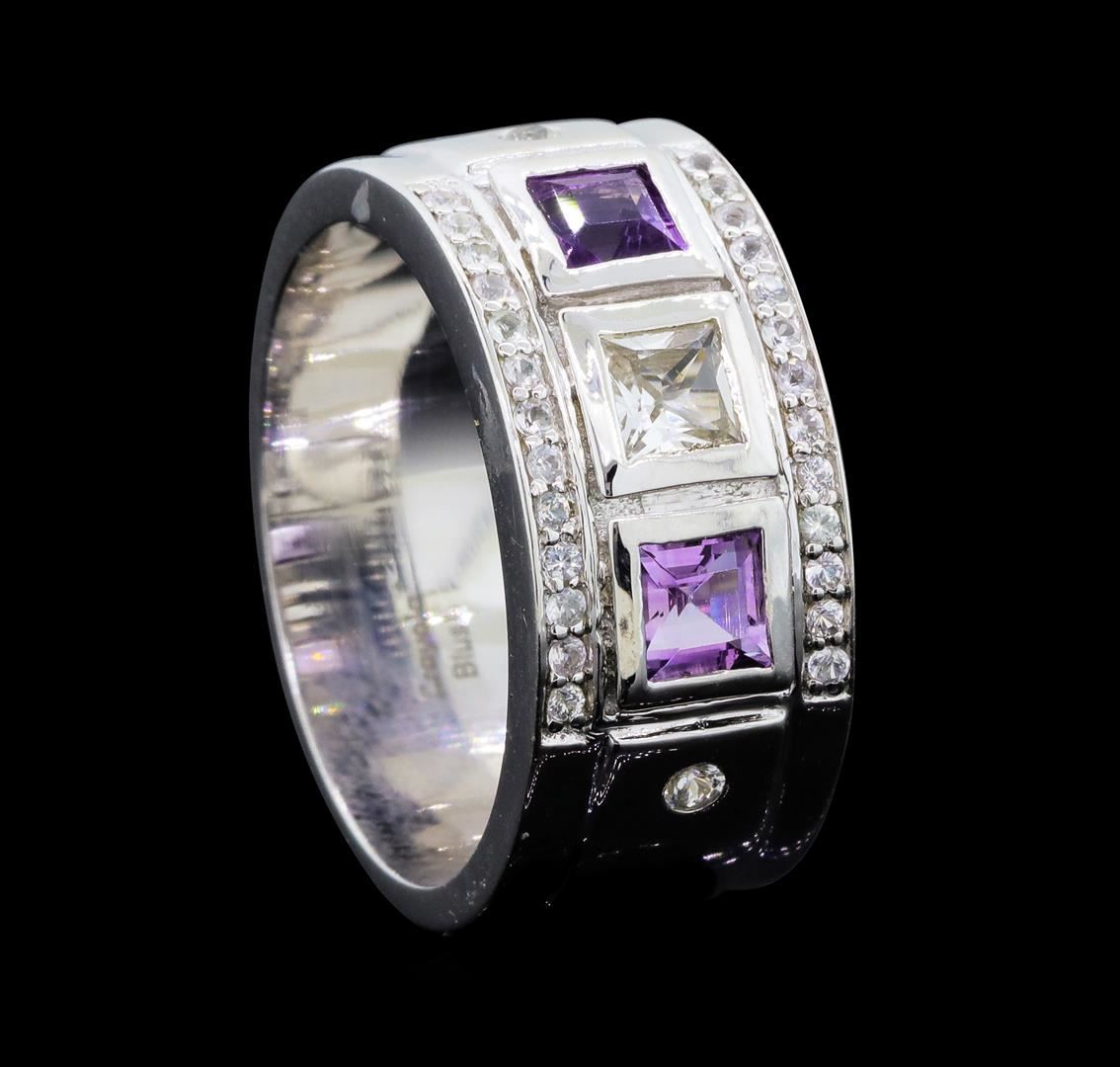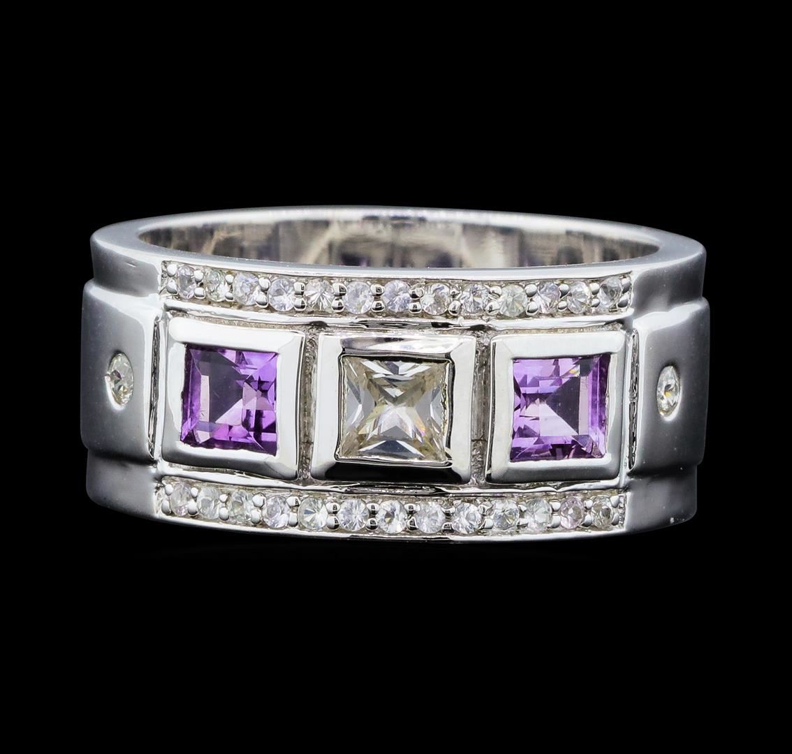 From the brand whose products have inspired creative expression for more than 110 years comes this beautiful ring by Crayola. This stunning piece of jewelry reflects the image and colorful personality of the Crayola brand. The Ring features .925 Silver With Rhodium weighing 6.30gr containing Pink Amethyst (AAA) Square 4.00mm - 2Pcs + Natural White Sapphire Square 4.00mm - 1Pcs + Natural White Sapphire Round 2.00mm - 2Pcs + Natural White Sapphire Round 1.20mm - 24Pcs (With J BACK). Total Pink Amethyst weight is 0.65ctw. Total White Sapphire weight is 0.80ctw.