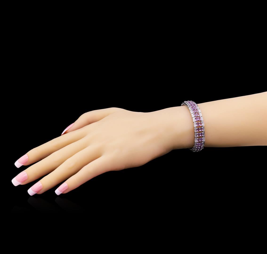 From the brand whose products have inspired creative expression for more than 110 years comes this beautiful bracelet by Crayola. This stunning piece of jewelry reflects the image and colorful personality of the Crayola brand. The Bracelet features .925 Silver With Rhodium weighing 35.444oz containing Blush Dark Pink Amethyst (AAA) Oval 4x3mm - 76Pcs. Total Pink Amethyst weight is 10.34ct. Measures: 7.75".