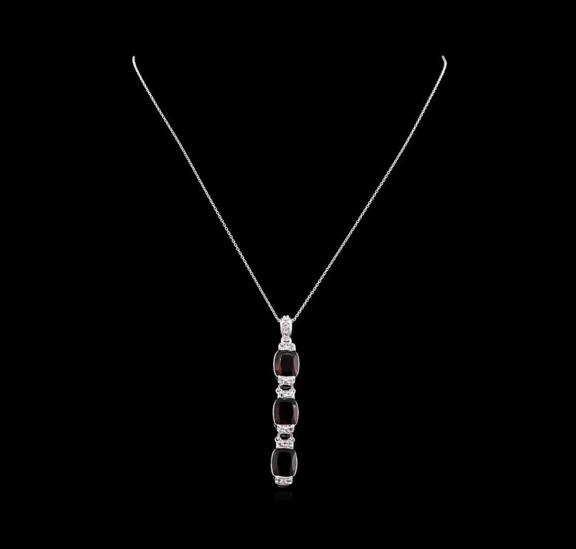 From the brand whose products have inspired creative expression for more than 110 years comes this beautiful pendant with chain by Crayola. This stunning piece of jewelry reflects the image and colorful personality of the Crayola brand. The Pendant With Chain features .925 Silver With Rhodium weighing 6.28oz containing Maroon Garnet (AAA) Cushion 10x8mm - 3Pcs + Natural White Sapphire Round 1.50mm - 23Pcs (With J BACK). Total Garnet weight is 10.5ct. Total White Sapphire weight is 0.39ct. Measures: 18".