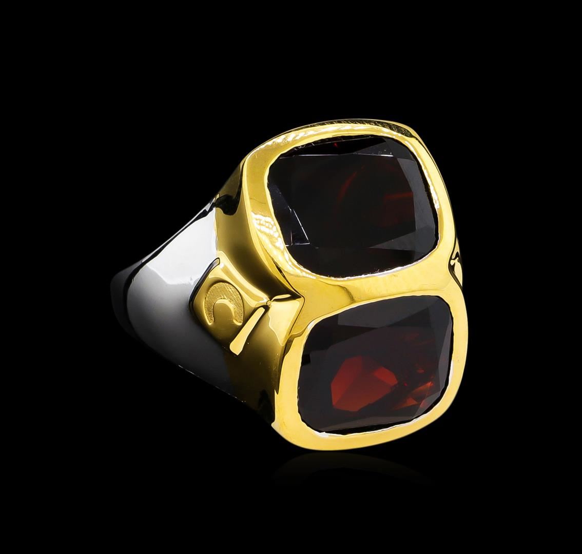 From the brand whose products have inspired creative expression for more than 110 years comes this beautiful ring by Crayola. This stunning piece of jewelry reflects the image and colorful personality of the Crayola brand. The Ring features .925 Silver With Rhodium Two-Tone weighing 6.5oz containing Maroon Garnet (AAA) Cushion 12x10mm (With J BACK & Yellow Pan Rhodium) Laser engraved "C" logo on side. Total Garnet weight is 10.9ct.