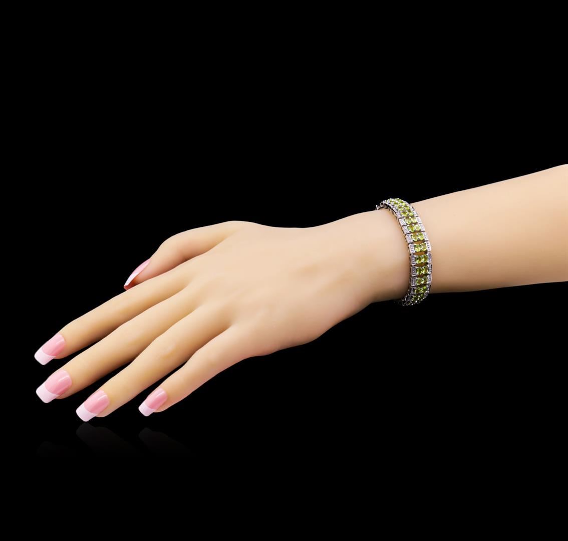 From the brand whose products have inspired creative expression for more than 110 years comes this beautiful bracelet by Crayola. This stunning piece of jewelry reflects the image and colorful personality of the Crayola brand. The Bracelet features .925 Silver With Rhodium weighing 35.444oz containing Granny Smith Apple Peridot (AAA) Oval 4x3mm - 76Pcs. Total Peridot weight is 12.16ct. Measures: 7.75".