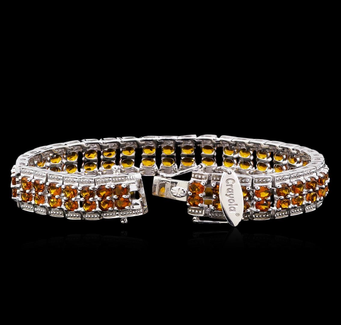 From the brand whose products have inspired creative expression for more than 110 years comes this beautiful bracelet by Crayola. This stunning piece of jewelry reflects the image and colorful personality of the Crayola brand. The Bracelet features .925 Silver With Rhodium weighing 35.444oz containing Neon Carrot Citrine (AAA) Oval 4x3mm - 76Pcs. Total Citrine weight is 12.16ct. Measures: 7.75".
