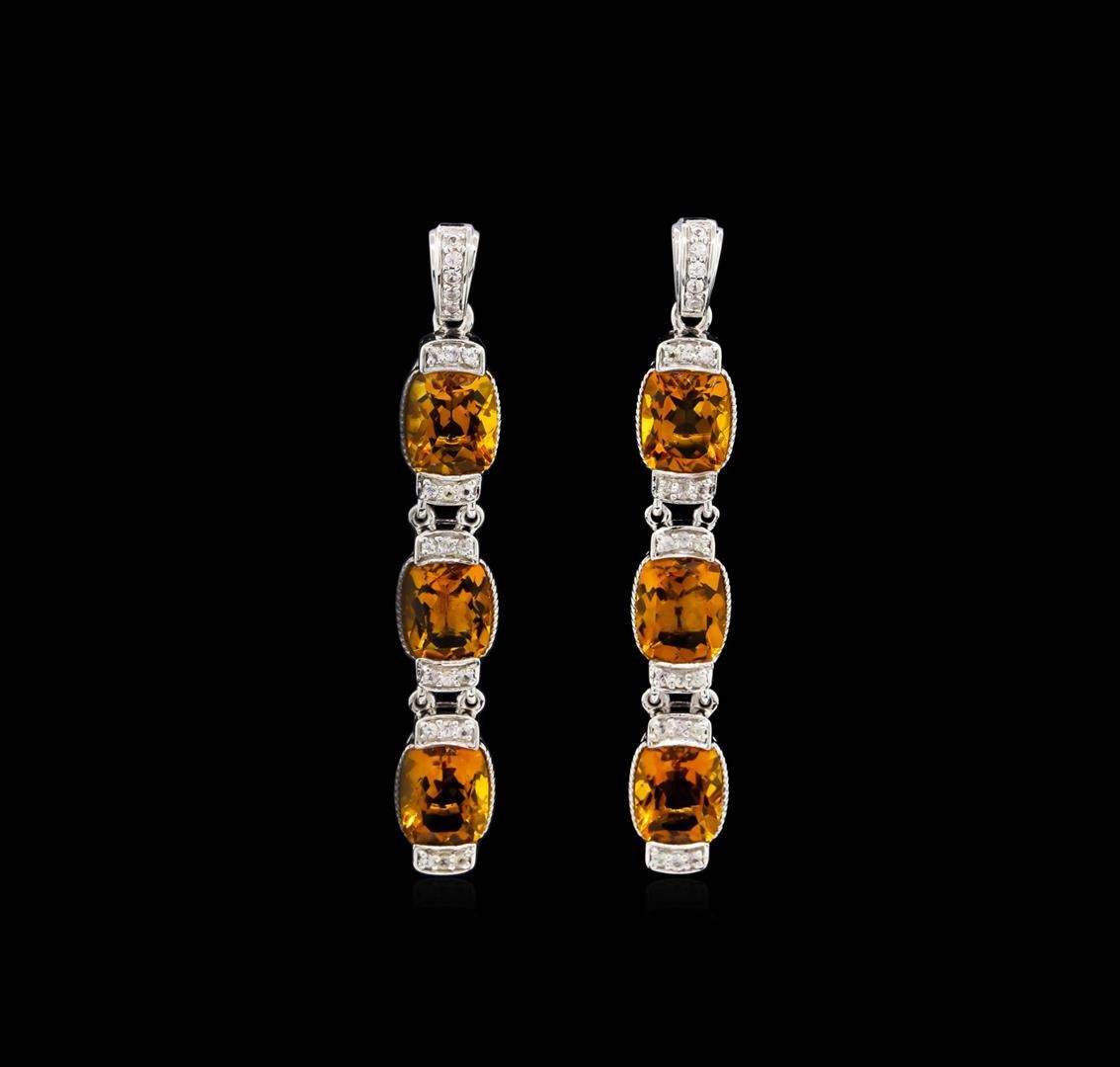 From the brand whose products have inspired creative expression for more than 110 years comes this beautiful pair of earrings by Crayola. This stunning piece of jewelry reflects the image and colorful personality of the Crayola brand. The Earrings features .925 Silver With Rhodium weighing 10.16oz containing Neon Carrot Citrine (AAA) Cushion 10x8mm - 6Pcs + Natural White Sapphire Round 1.50mm - 46Pcs (With J BACK). Total Citrine weight is 15.6ct. Total White Sapphire weight is 0.78ct.