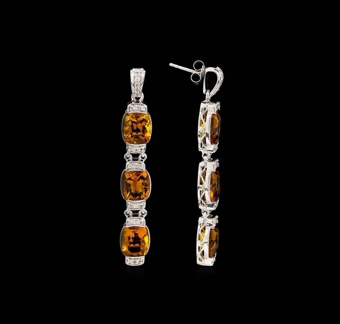 From the brand whose products have inspired creative expression for more than 110 years comes this beautiful pair of earrings by Crayola. This stunning piece of jewelry reflects the image and colorful personality of the Crayola brand. The Earrings features .925 Silver With Rhodium weighing 10.16oz containing Neon Carrot Citrine (AAA) Cushion 10x8mm - 6Pcs + Natural White Sapphire Round 1.50mm - 46Pcs (With J BACK). Total Citrine weight is 15.6ct. Total White Sapphire weight is 0.78ct.