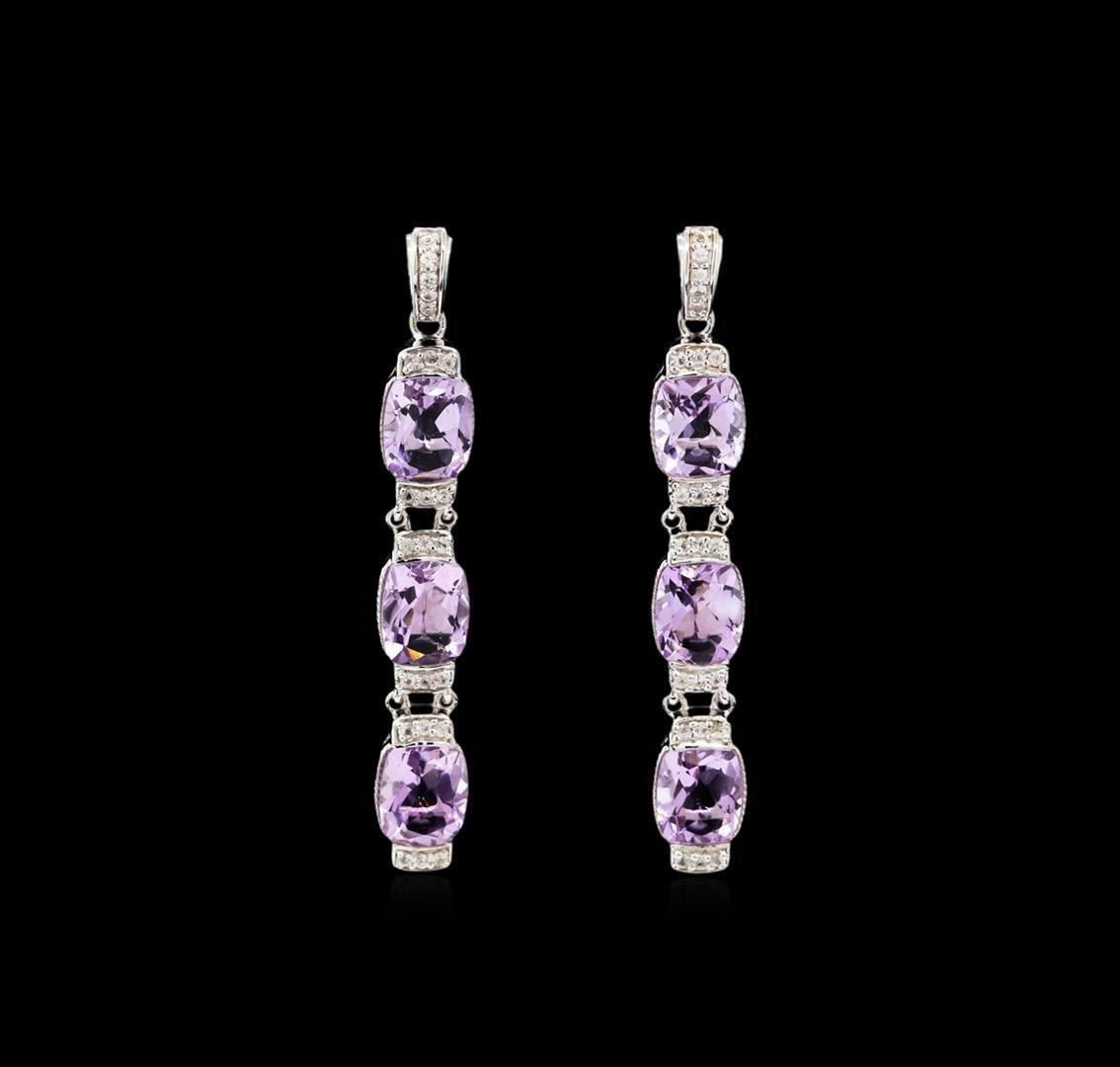 From the brand whose products have inspired creative expression for more than 110 years comes this beautiful pair of earrings by Crayola. This stunning piece of jewelry reflects the image and colorful personality of the Crayola brand. The Earrings features .925 Silver With Rhodium weighing 10.16oz containing Blush Dark Pink Amethyst (AAA) Cushion 10x8mm - 6Pcs + Natural White Sapphire Round 1.50mm - 46Pcs (With J BACK). Total Pink Amethyst weight is 15.6ct. Total White Sapphire weight is 0.78ct.