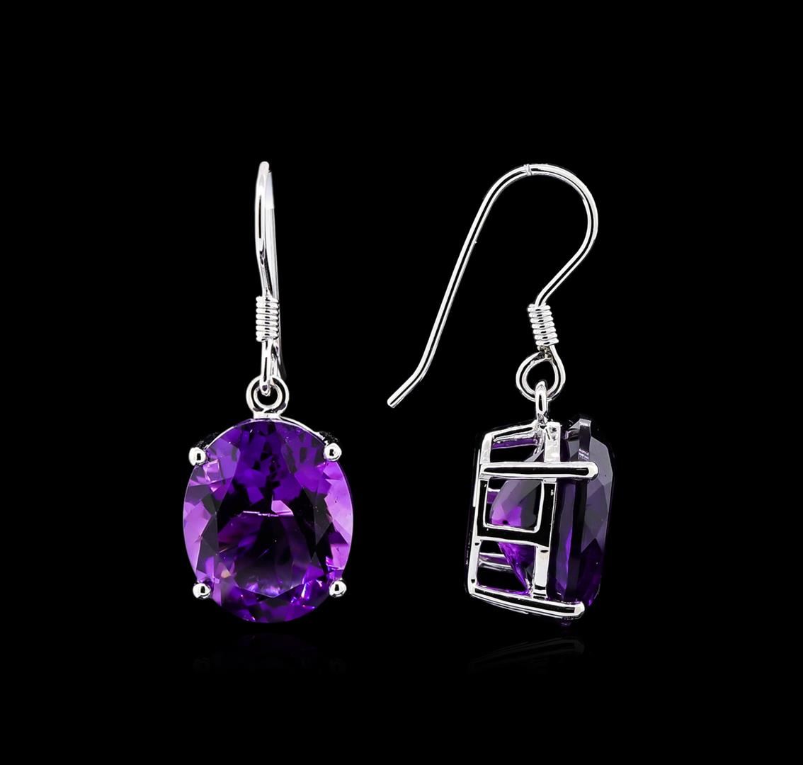 From the brand whose products have inspired creative expression for more than 110 years comes this beautiful pair of earrings by Crayola. This stunning piece of jewelry reflects the image and colorful personality of the Crayola brand. The Earrings features 14K White Gold weighing 9.25oz containing Purple Heart Amethyst (AAA) Oval Bezel Setting with open back 15x12mm - 2Pcs with laser engraved Crayola logo. Total Amethyst weight is 17.6ct.