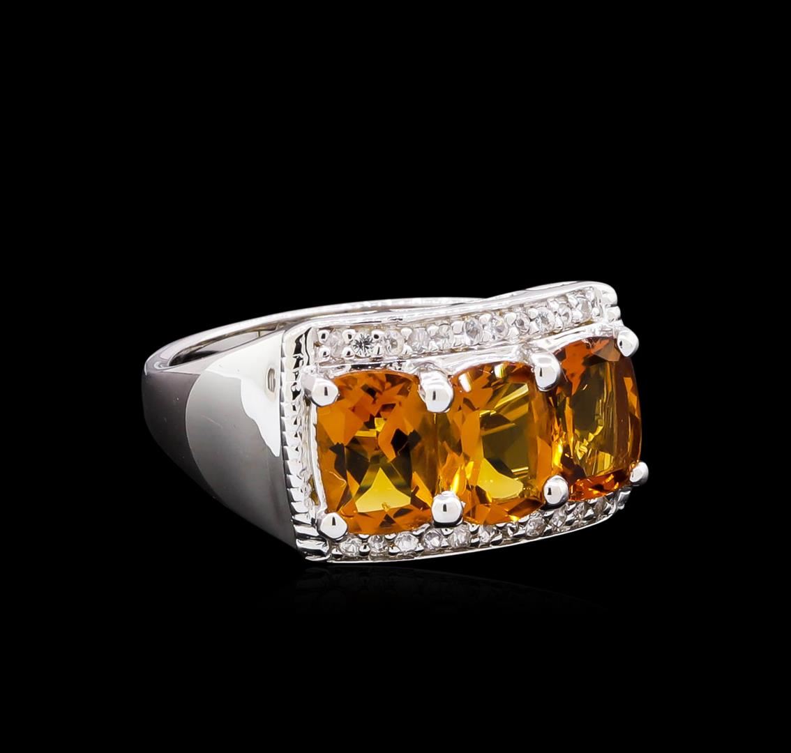 From the brand whose products have inspired creative expression for more than 110 years comes this beautiful ring by Crayola. This stunning piece of jewelry reflects the image and colorful personality of the Crayola brand. The Ring features .925 Silver With Rhodium weighing 4.77oz containing Neon Carrot Citrine (AAA) Cushion 7x5mm - 3Pcs + White Sapphire Dia Cut Round 1.00mm - 22Pcs (With J BACK). Total Citrine weight is 2.4ct. Total White Sapphire weight is 0.11ct.