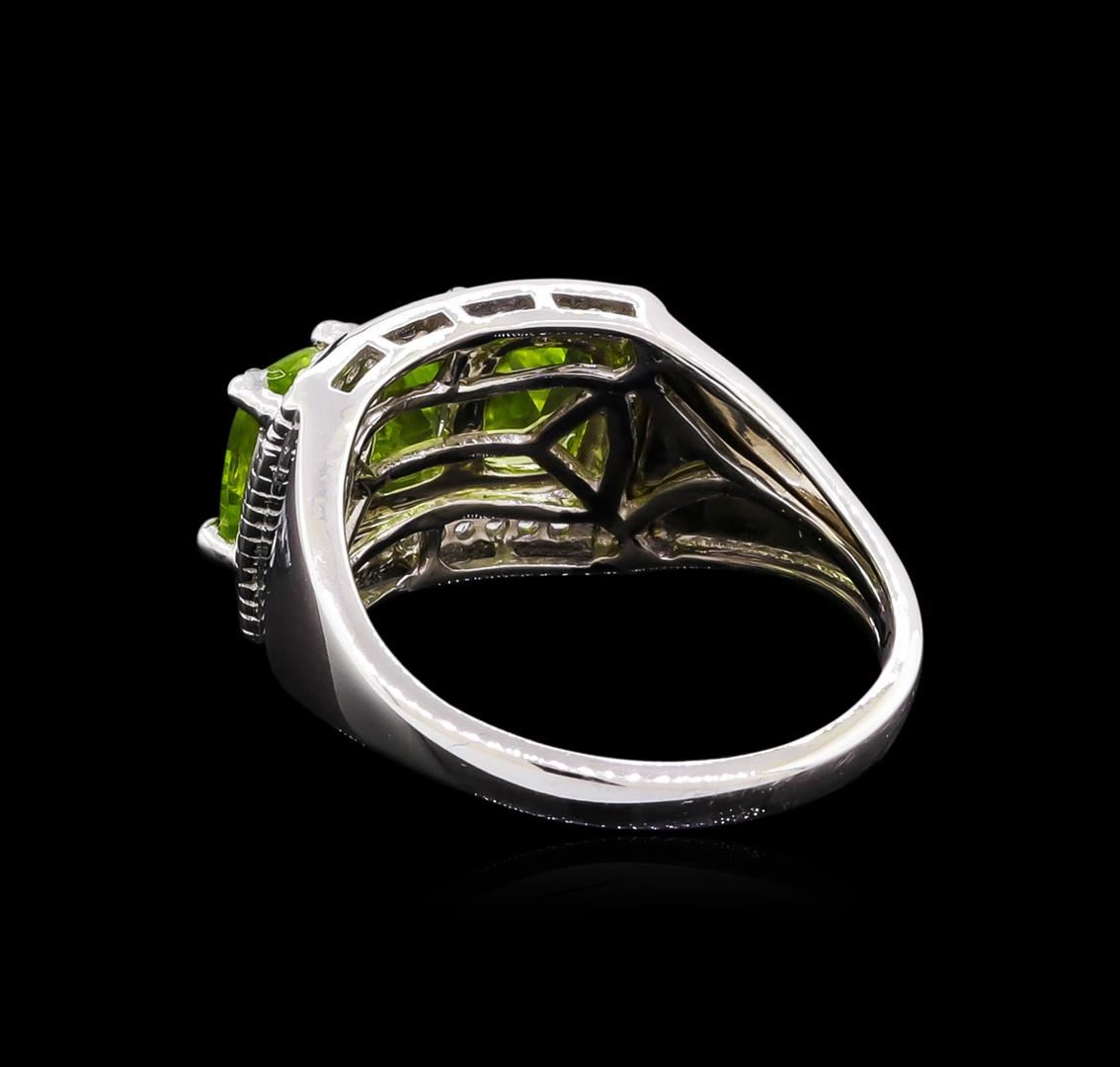 From the brand whose products have inspired creative expression for more than 110 years comes this beautiful ring by Crayola. This stunning piece of jewelry reflects the image and colorful personality of the Crayola brand. The Ring features .925 Silver With Rhodium weighing 4.77oz containing Granny Smith Apple Peridot (AAA) Cushion 7x5mm - 3Pcs + White Sapphire Dia Cut Round 1.00mm - 22Pcs (With J BACK). Total Peridot weight is 2.4ct. Total White Sapphire weight is 0.11ct.