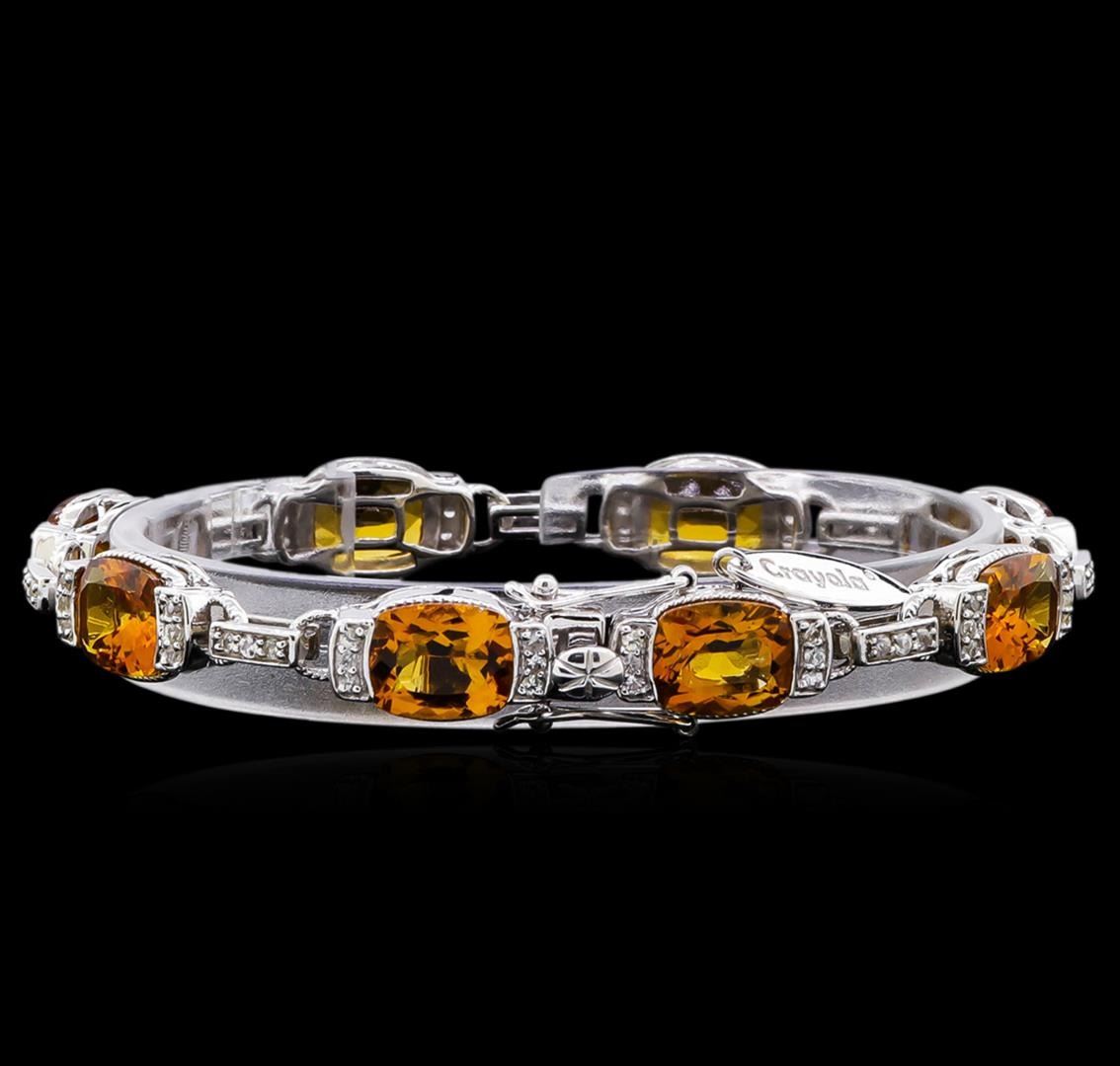 From the brand whose products have inspired creative expression for more than 110 years comes this beautiful bracelet by Crayola. This stunning piece of jewelry reflects the image and colorful personality of the Crayola brand. The Bracelet features .925 Silver With Rhodium weighing 17.73oz containing Neon Carrot Citrine (AAA) Cushion 10x8mm - 8Pcs + Natural White Sapphire Round 1.50mm - 69Pcs (With J BACK). Total Citrine weight is 20ct. Total White Sapphire weight is 1.17ct. Measures: 7.50".